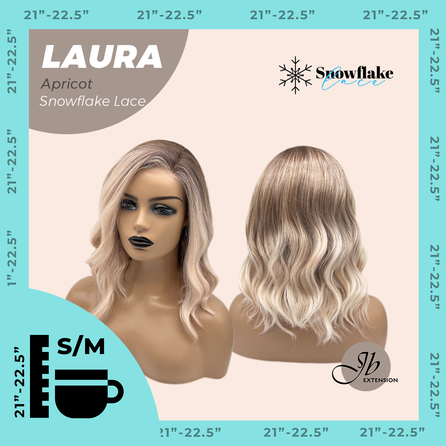 JBEXTENSION 14 Inches Apricot Pre-Cut Side Part Snowflake Lace Frontlace Glueless Wig LAURA SNOWFLAKE APRICOT【BENDY EAR TABS】
