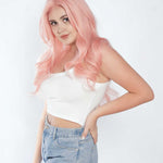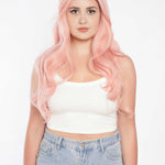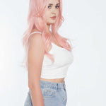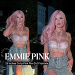 JBEXTENSION 26 Inches Curly Women Pink Wig Pre-Cut Frontlace Glueless Wig EMMIE PINK