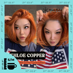 HOT OF SEASON - 12 Inches Bob Cut Copper Pre-Cut Snowflake Lace Frontlace Glueless Wig KHLOE COPPER【PERMATEASE】【BENDY EAR TABS】