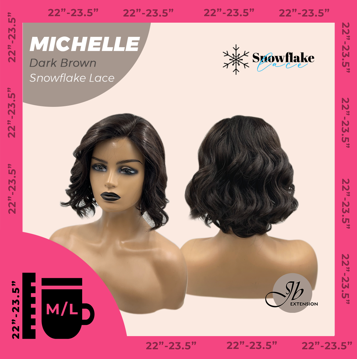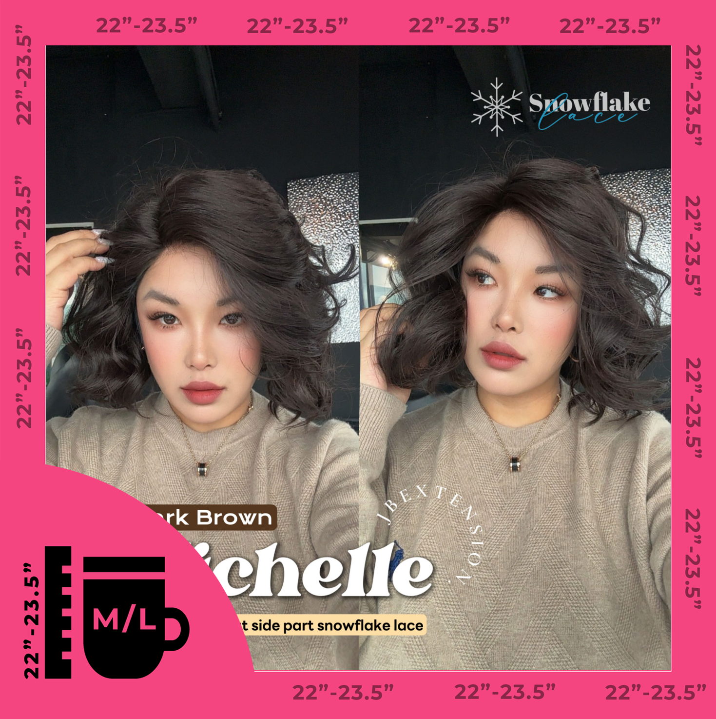 JBEXTENSION 10 Inches Dark Brown Pre-Cut Side Part Snowflake Lace Frontlace Glueless Wig MICHELLE DARK BROWN【BENDY EAR TABS】- M/L