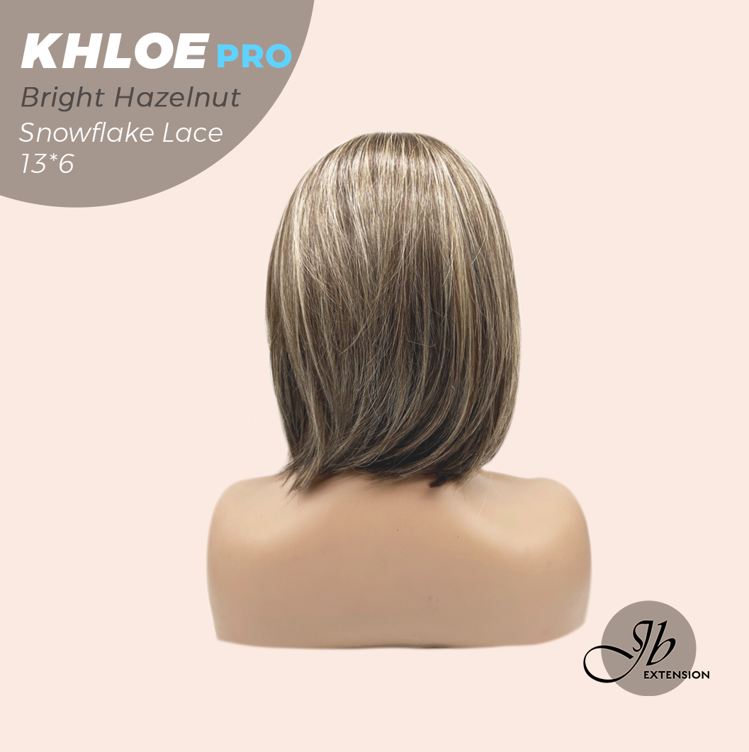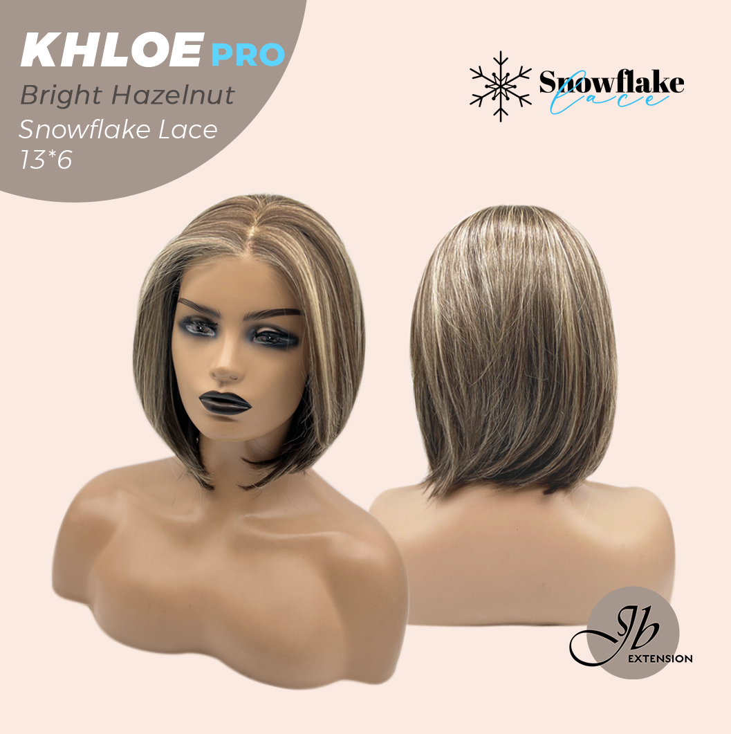JBEXTENSION 12 Inches Bob Cut Bright Hazelnut Pre-Cut 13X6 Free Part Snowflake Lace Frontlace Glueless Wig KHLOE PRO - BRIGHT HAZELNUT【BENDY EAR TABS】