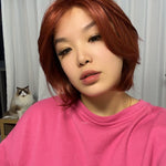 JBEXTENSION 12 Inches Bob Cut Copper Red Pre-Cut Snowflake Lace Frontlace Glueless Wig KHLOE COPPER RED【PERMATEASE】【BENDY EAR TABS】