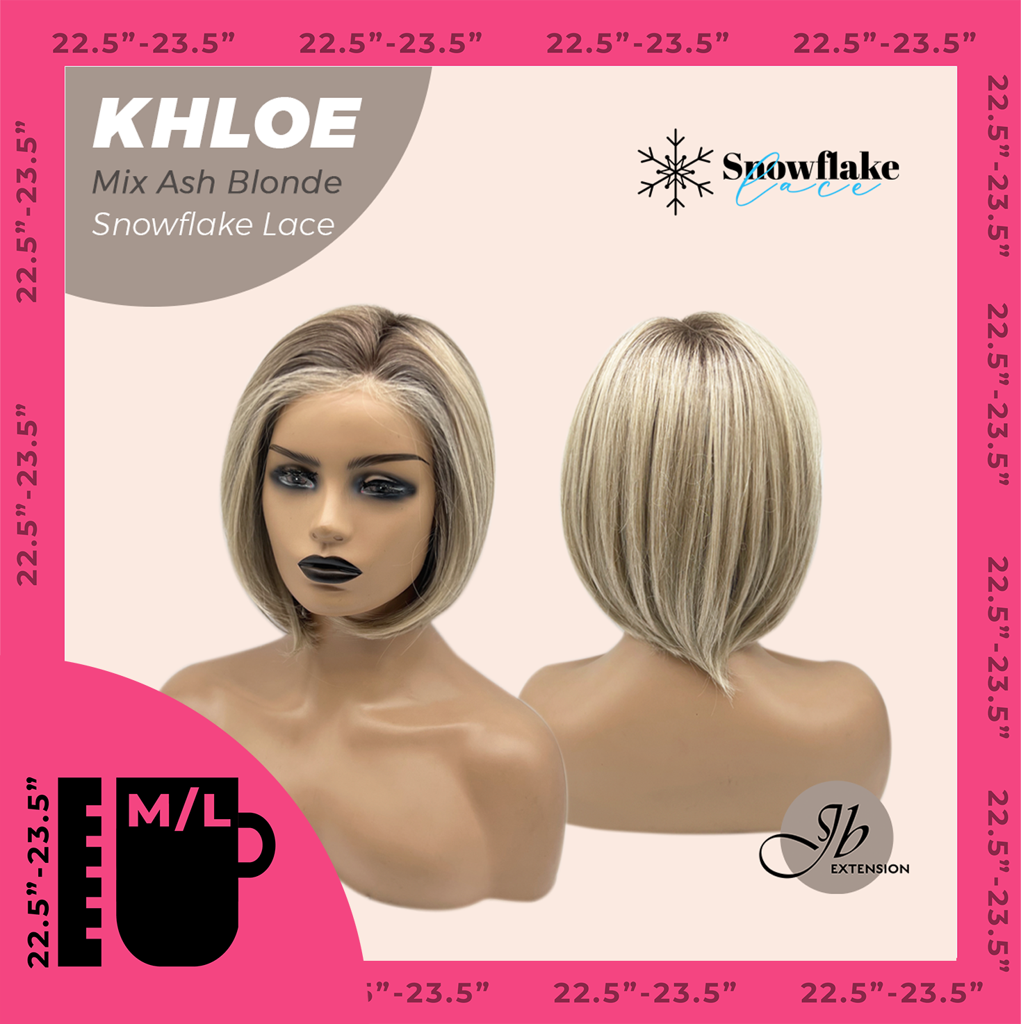 JBEXTENSION 12 Inches Bob Cut Mix Ash Blonde Pre-Cut Snowflake Lace Frontlace Glueless Wig KHLOE MIX ASH BLONDE【PERMATEASE】【BENDY EAR TABS】- M/L