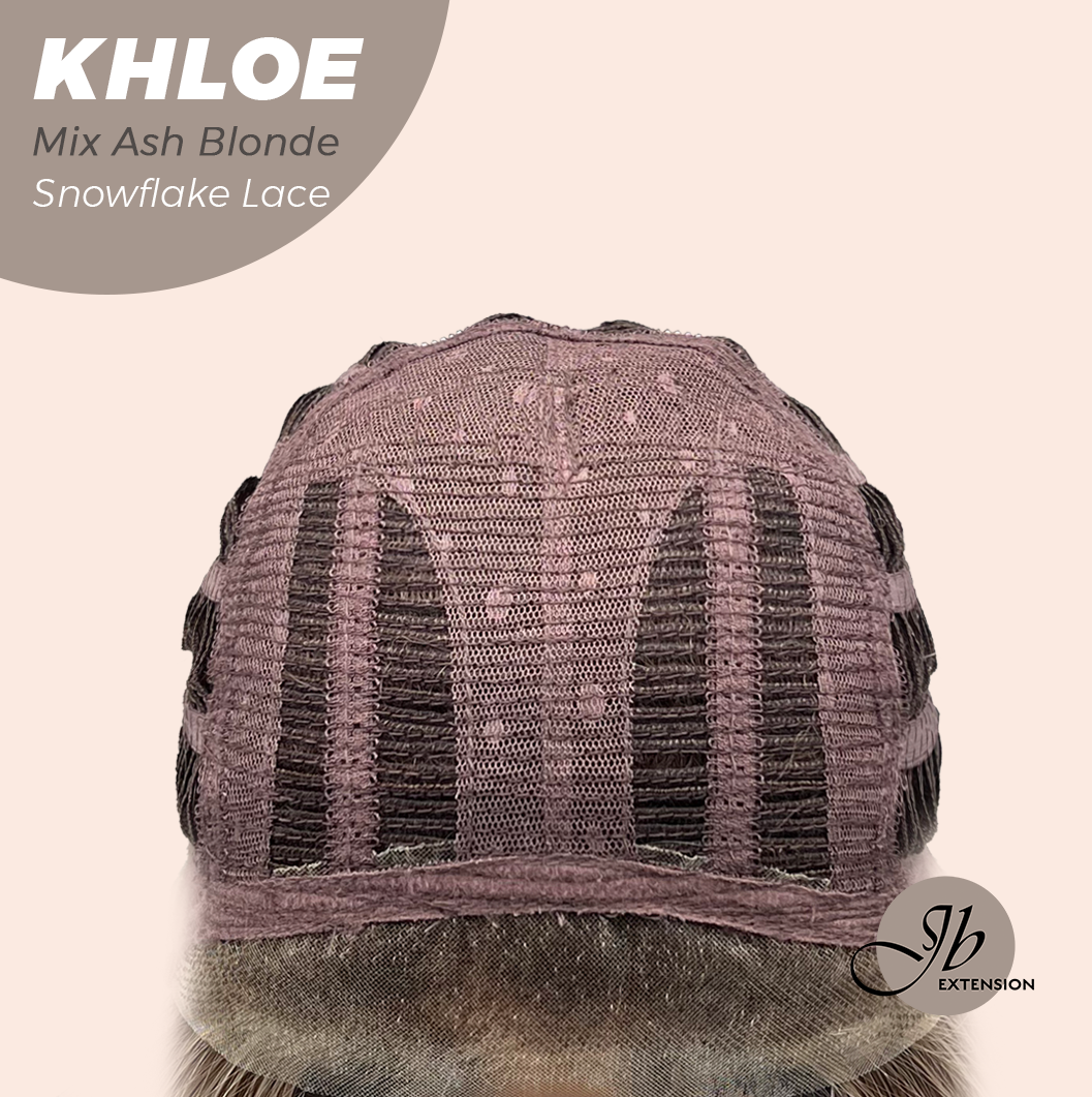 JBEXTENSION 12 Inches Bob Cut Mix Ash Blonde Pre-Cut Snowflake Lace Frontlace Glueless Wig KHLOE MIX ASH BLONDE【PERMATEASE】【BENDY EAR TABS】