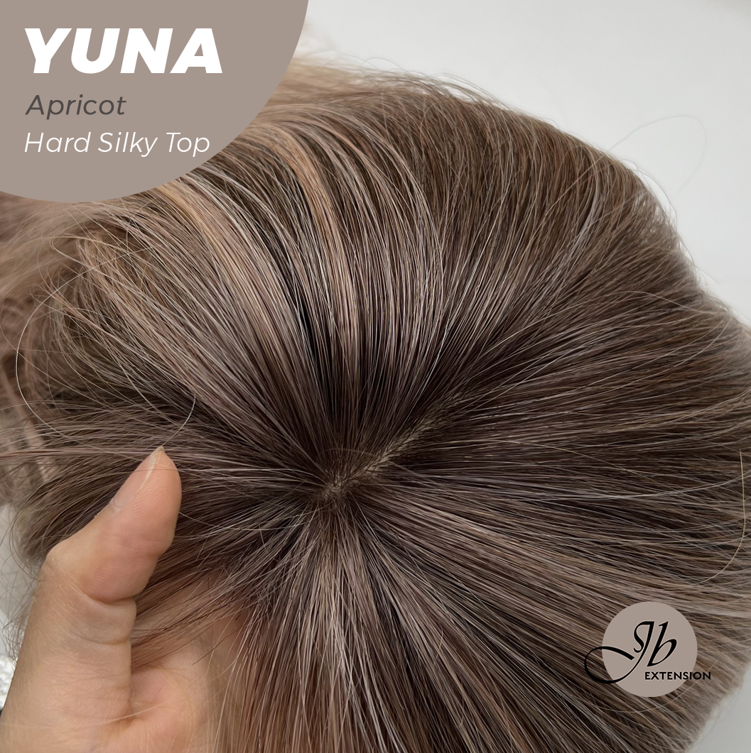 JBEXTENSION 12 Inches Scalpiana Apricot 3.5X4 Hard Silky Top Natural Scalp Effect Women Wig With Bangs YUNA APRICOT