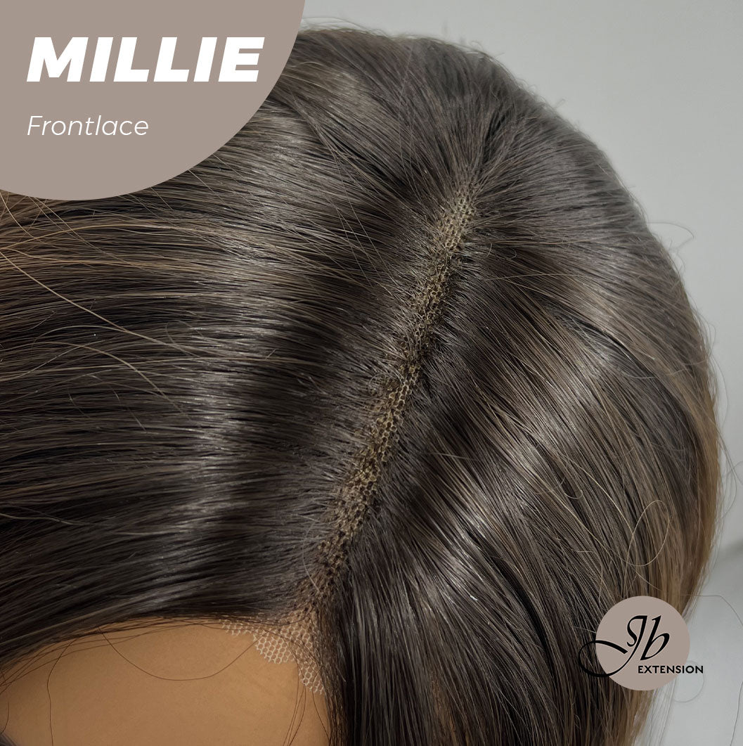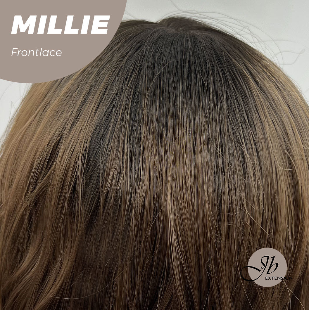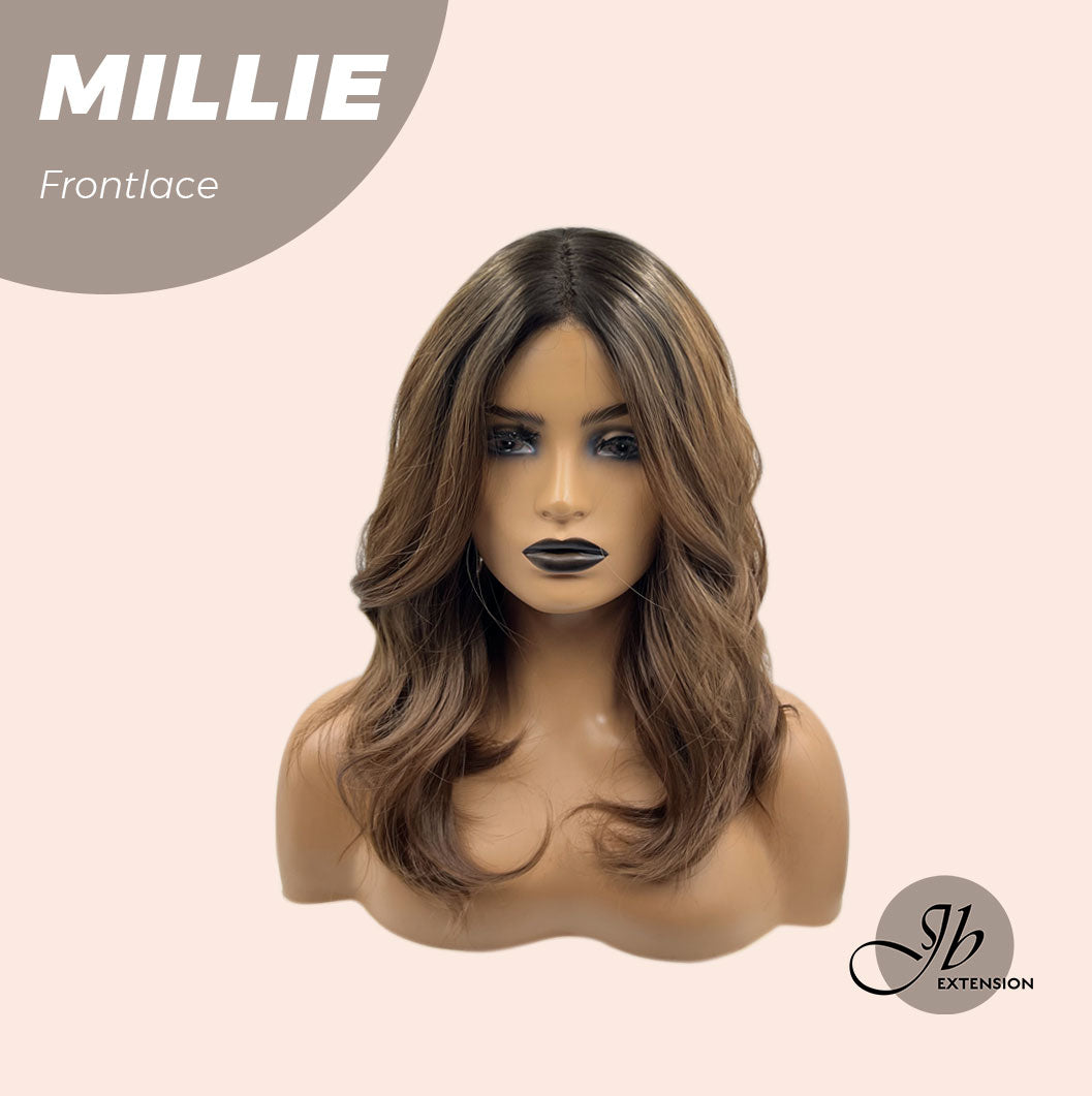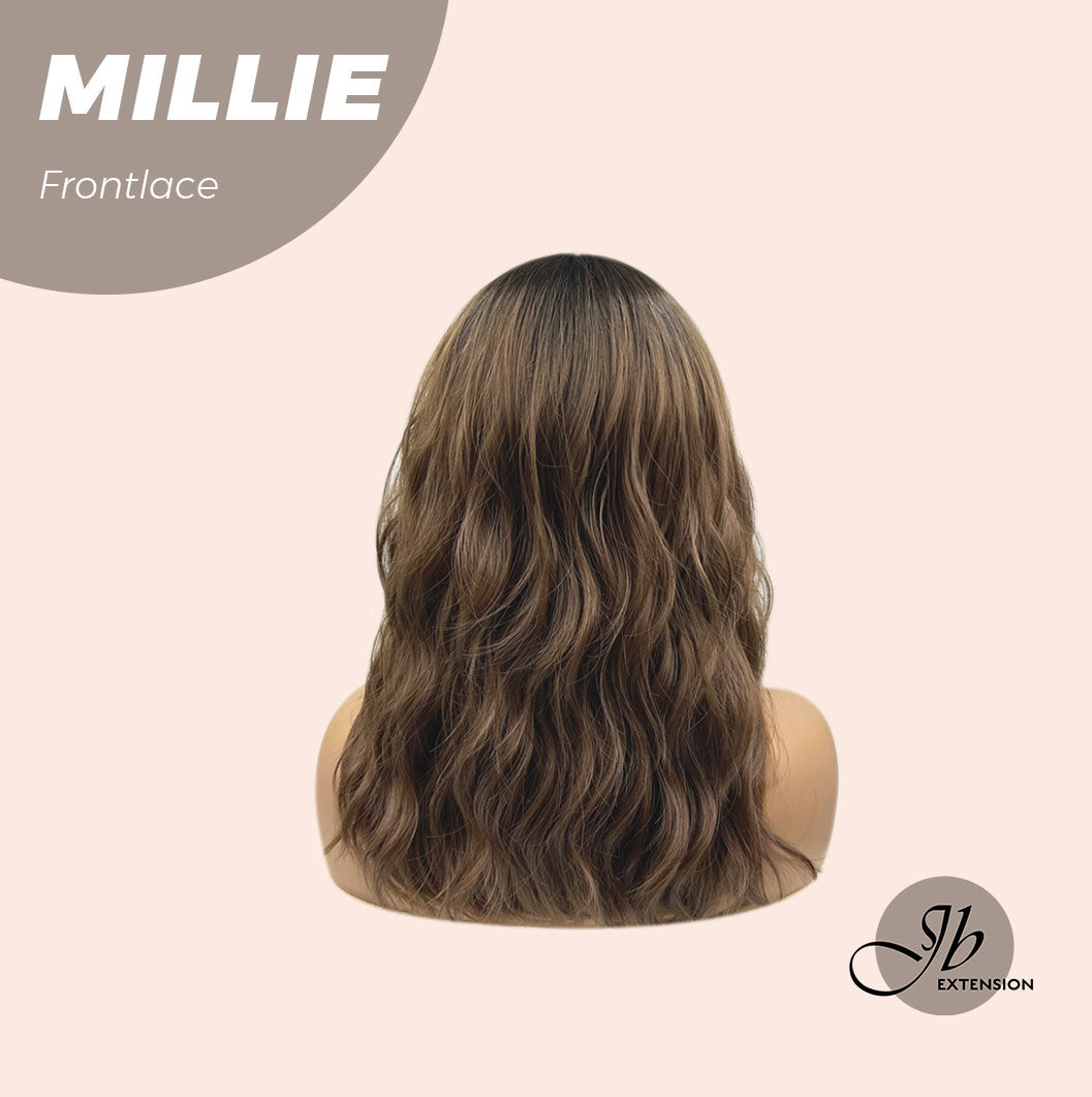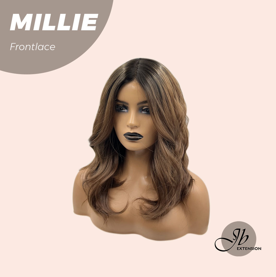 JBEXTENSION 17 Inches Wave Mocha With Dark Root Pre-Cut Frontlace Glueless Wig MILLIE