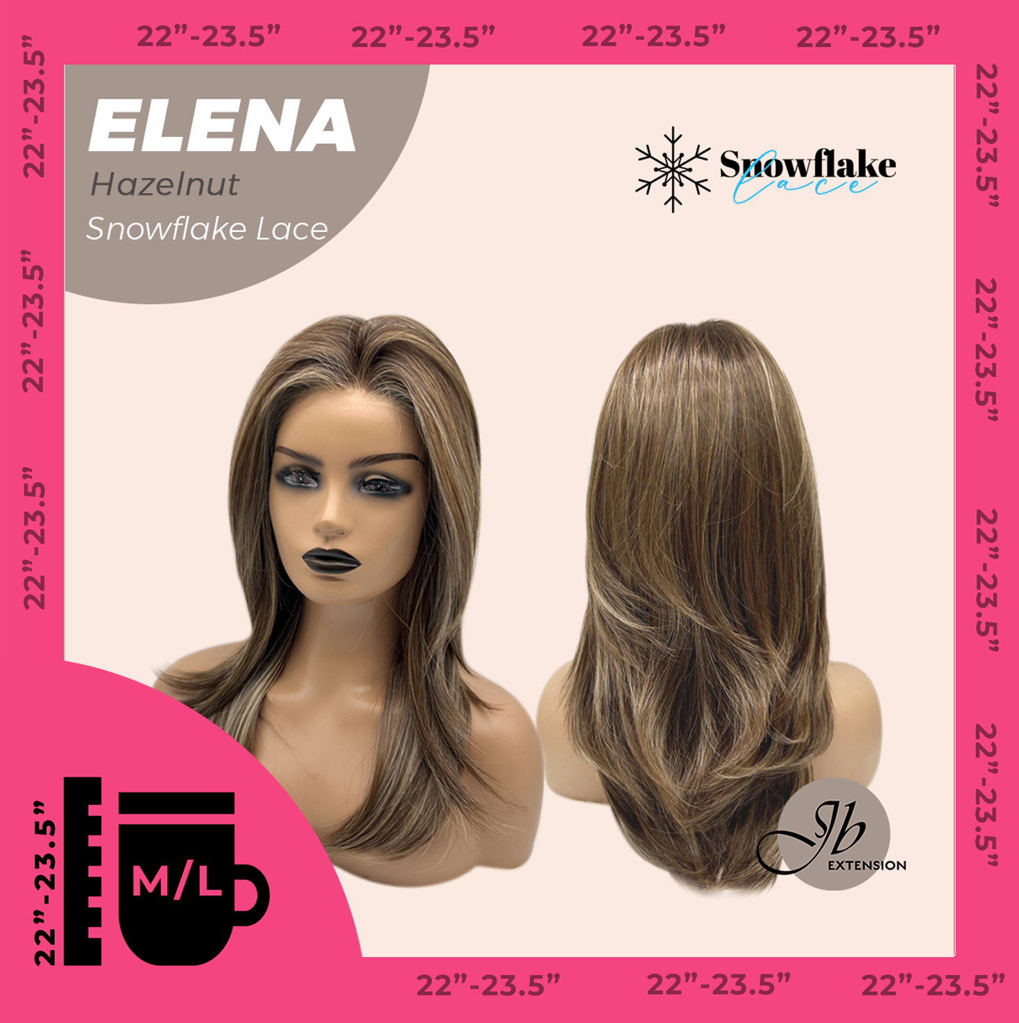 JBEXTENSION 18 Inches Hazelnut Pre-Cut Snowflake Lace Frontlace Glueless Wig ELENA HAZELNUT【PERMATEASE】【BENDY EAR TABS】- M/L
