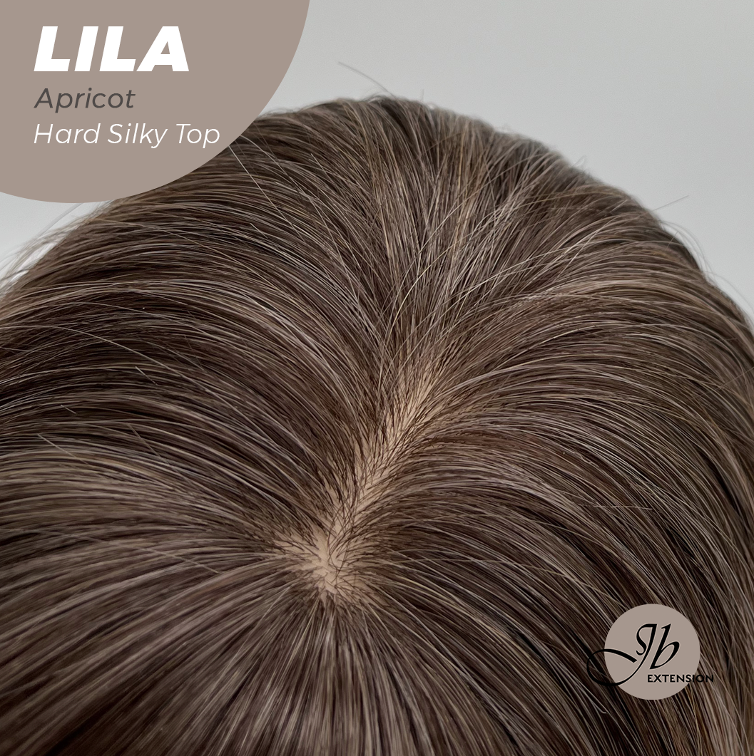 JBEXTENSION 20 Inches Scalpiana Apricot Wolf Cut 3.5X4 Hard Silky Top Natural Scalp Effect Wig With Bangs LILA APRICOT