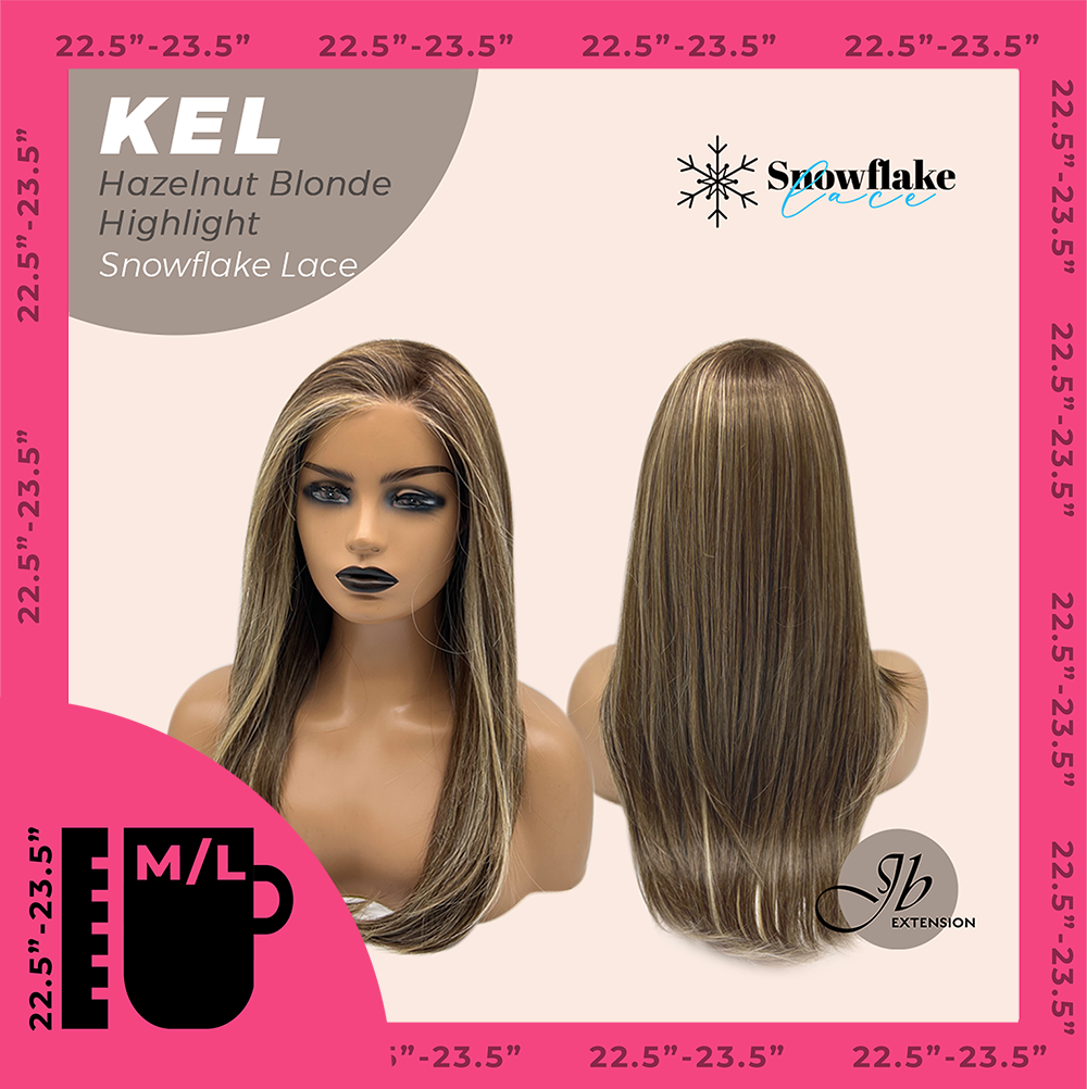 JBEXTENSION 22 Inches Hazelnut Blonde Highlight Pre-Cut Snowflake Lace Frontlace Glueless Wig KEL HAZELNUT【PERMATEASE】【BENDY EAR TABS】- M/L