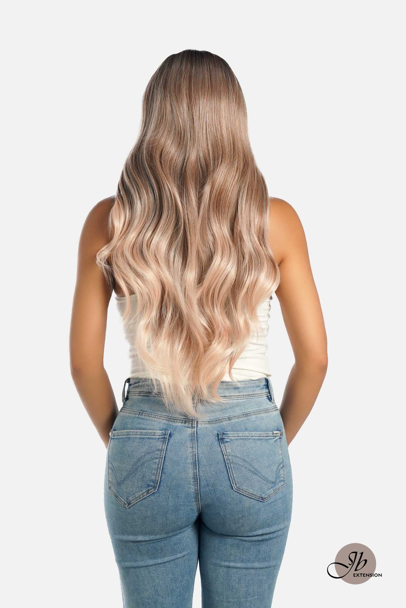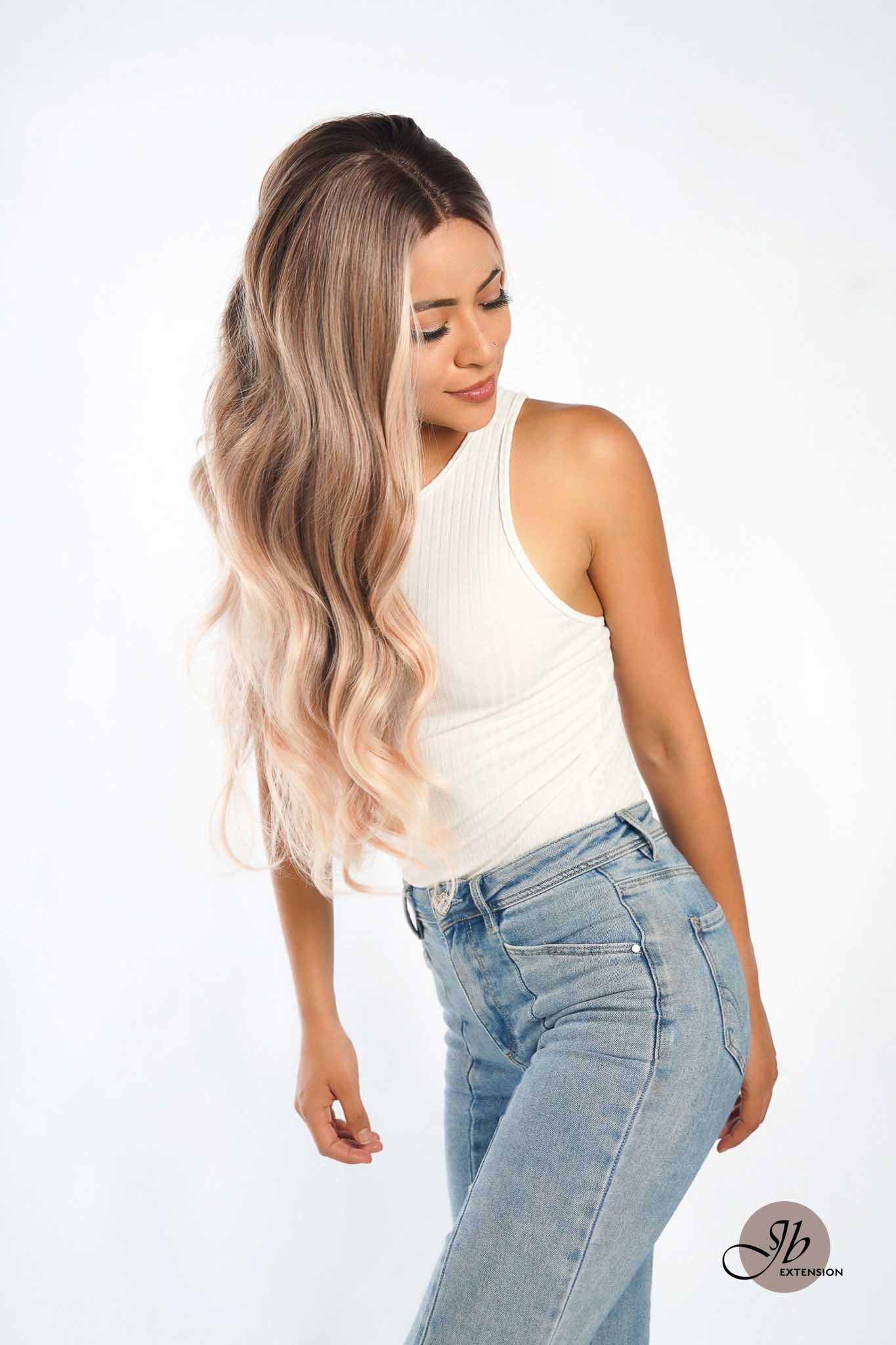 Hair color features: This is a very natural and beautiful highlight peach long curly hair, the design is very fashionable and beautiful, giving people a natural beauty.