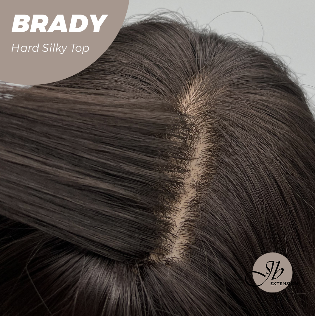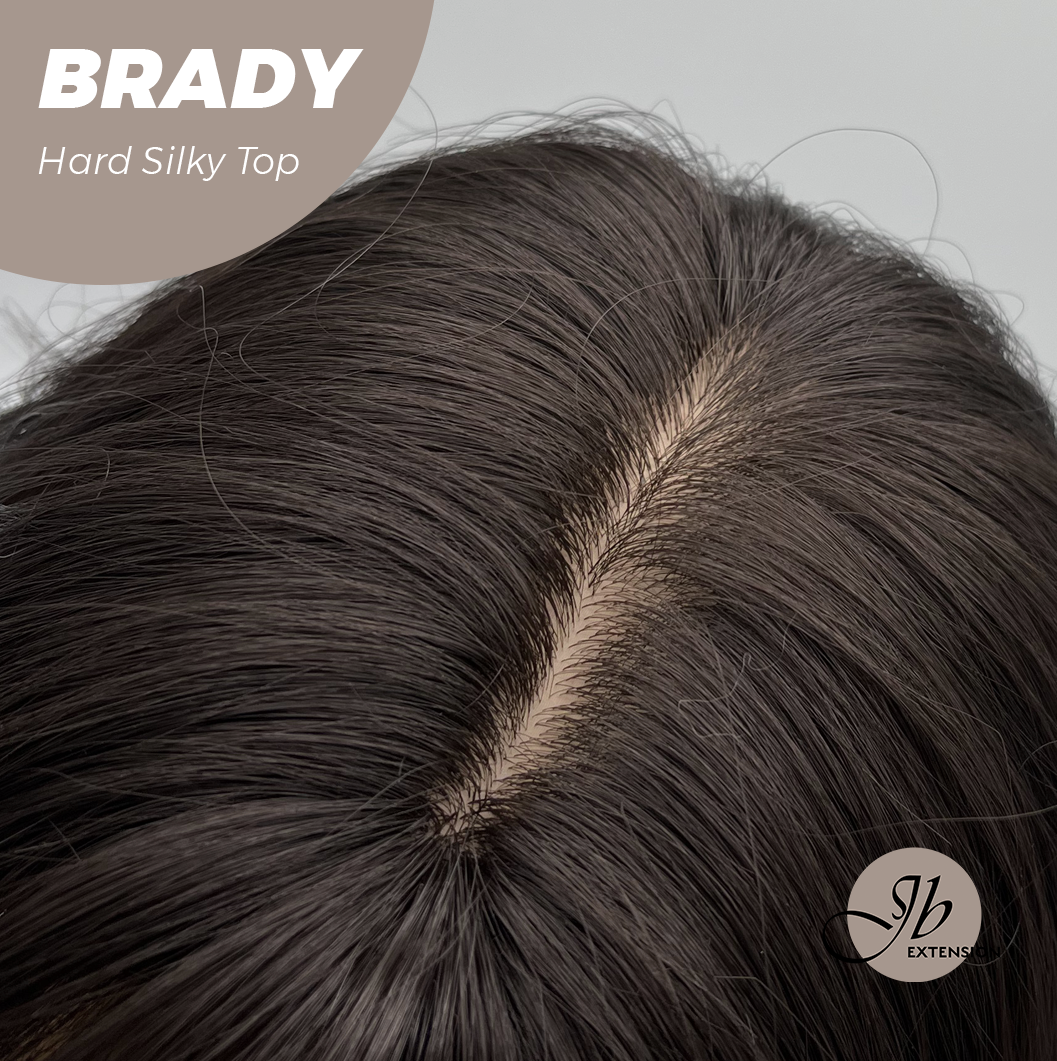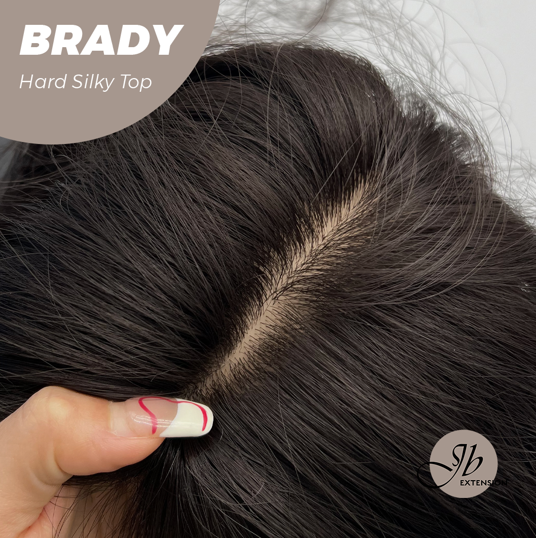 JBEXTENSION 12 Inches Scalpiana Wave Midnight Brown( Black/Brown) 3.5X4 Hard Silky Top Natural Scalp Effect Wig with Bang BRADY