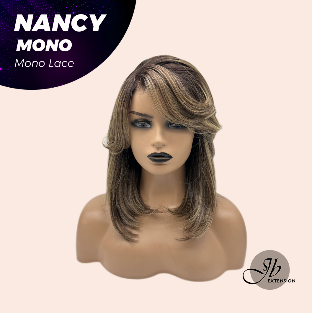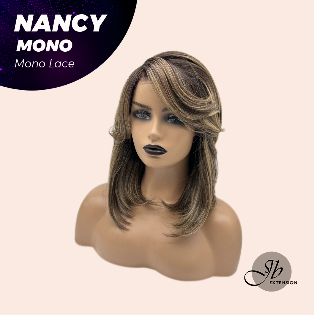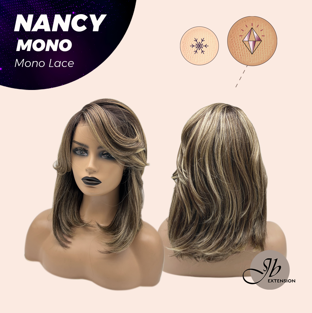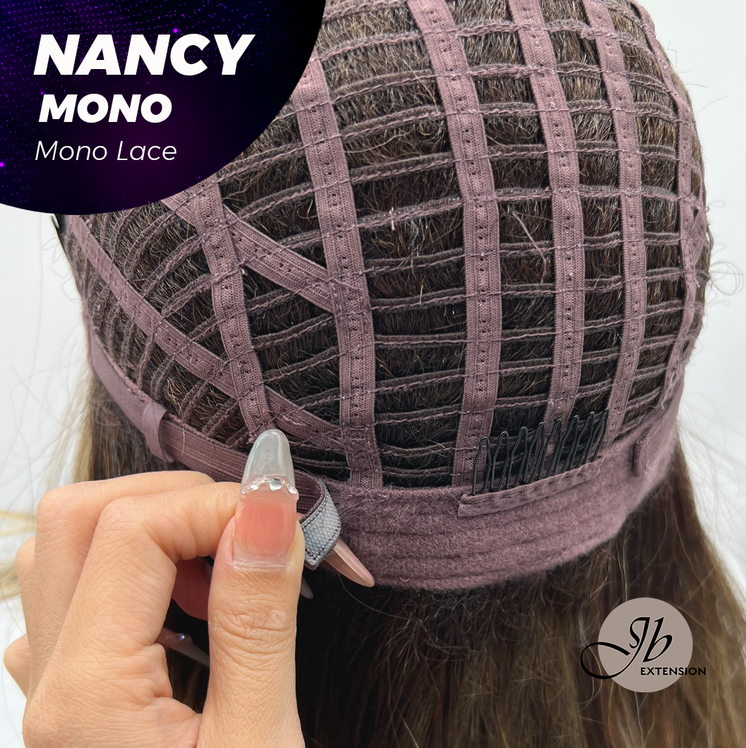 JBEXTENSION NANCY MONO Monofilament Handmade Wig 6X5 Full Monofilament Hand Tied Top Wig 14 Inches Dark Brown Curly Mono Lace Wig Glueless Black Sapphire Wig NANCY MONO - BLACK SAPPHIRE【BENDY EAR TABS】
