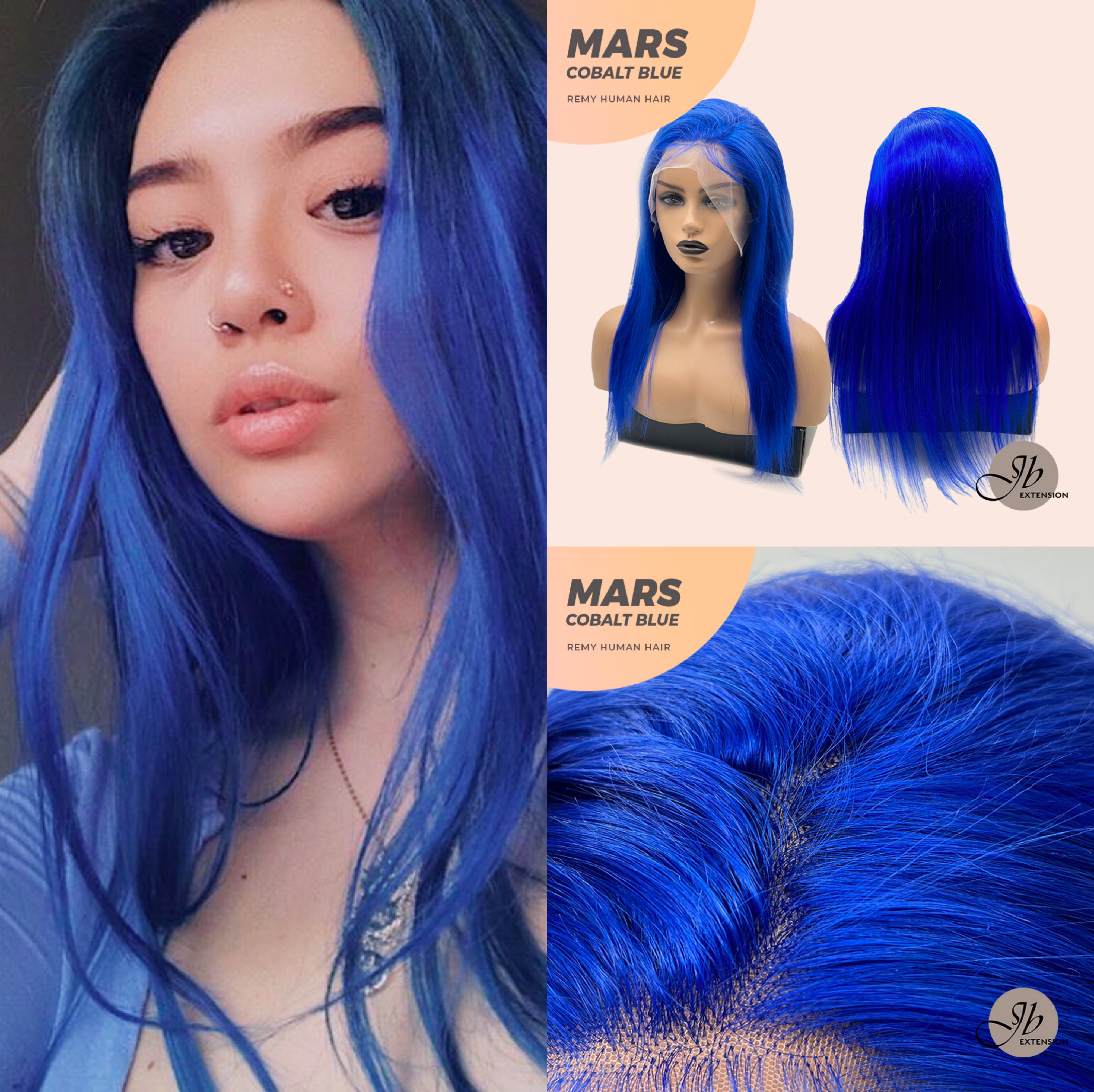 JBEXTENSION Real Human Hair 18 inches 13X5 Lakefront Free Parting 150 Density MARS ( Cobalt Blue )