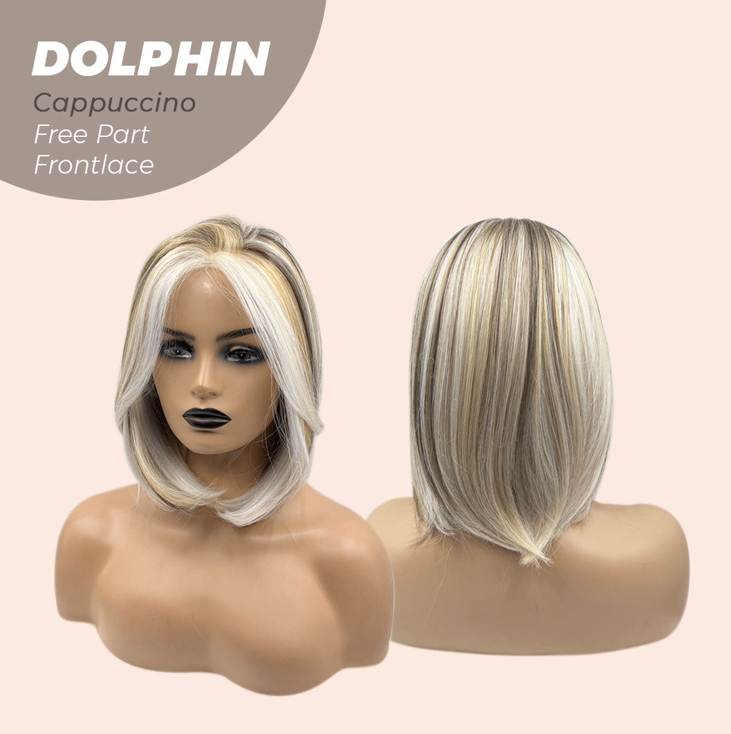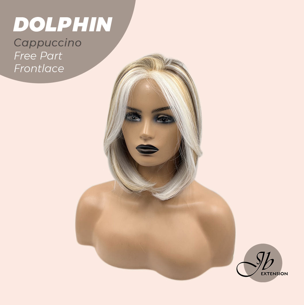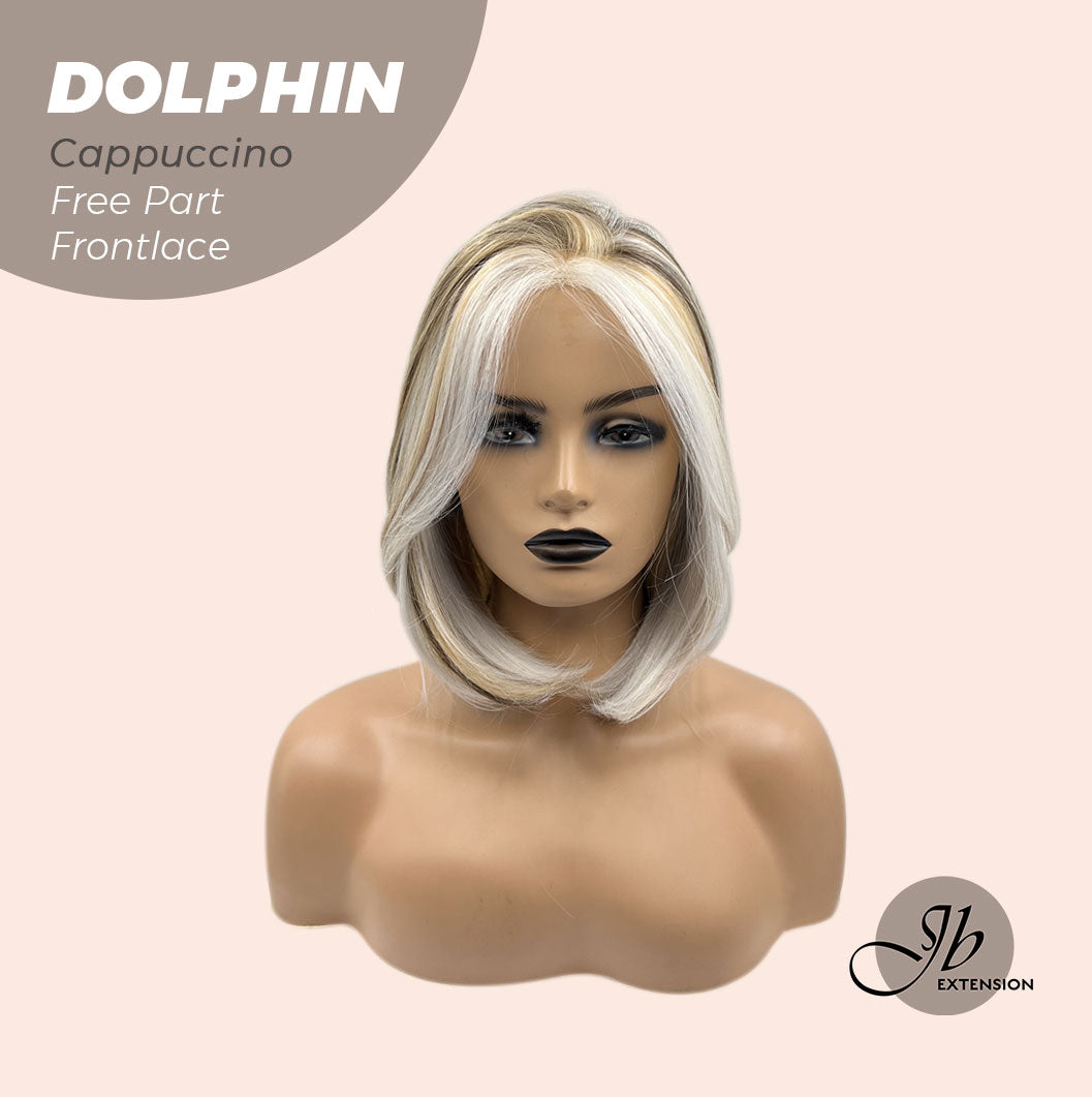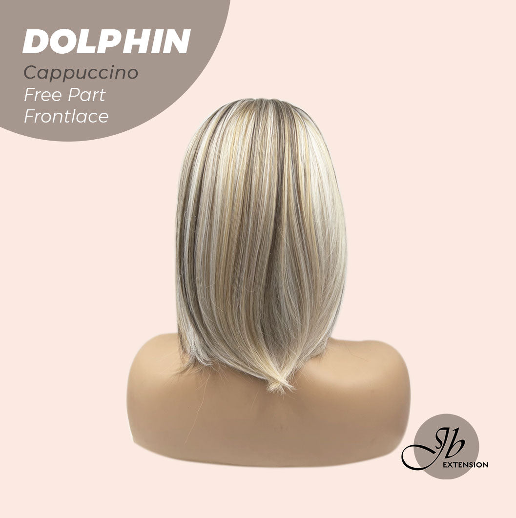 JBEXTENSION 12 Inches Bob Cut Mix Color With Blonde Brown Highlight Free Part Pre-Cut Frontlace Glueless Wig DOLPHIN CAPPUCCINO