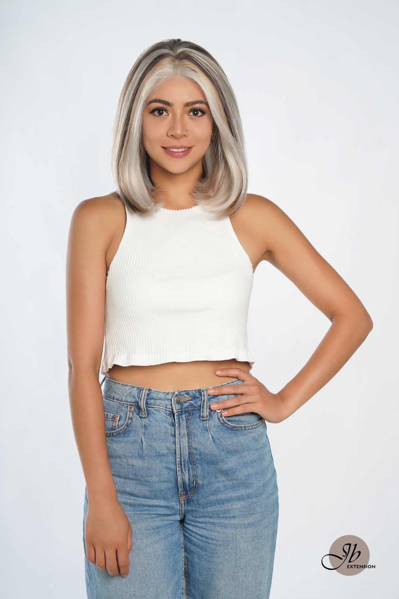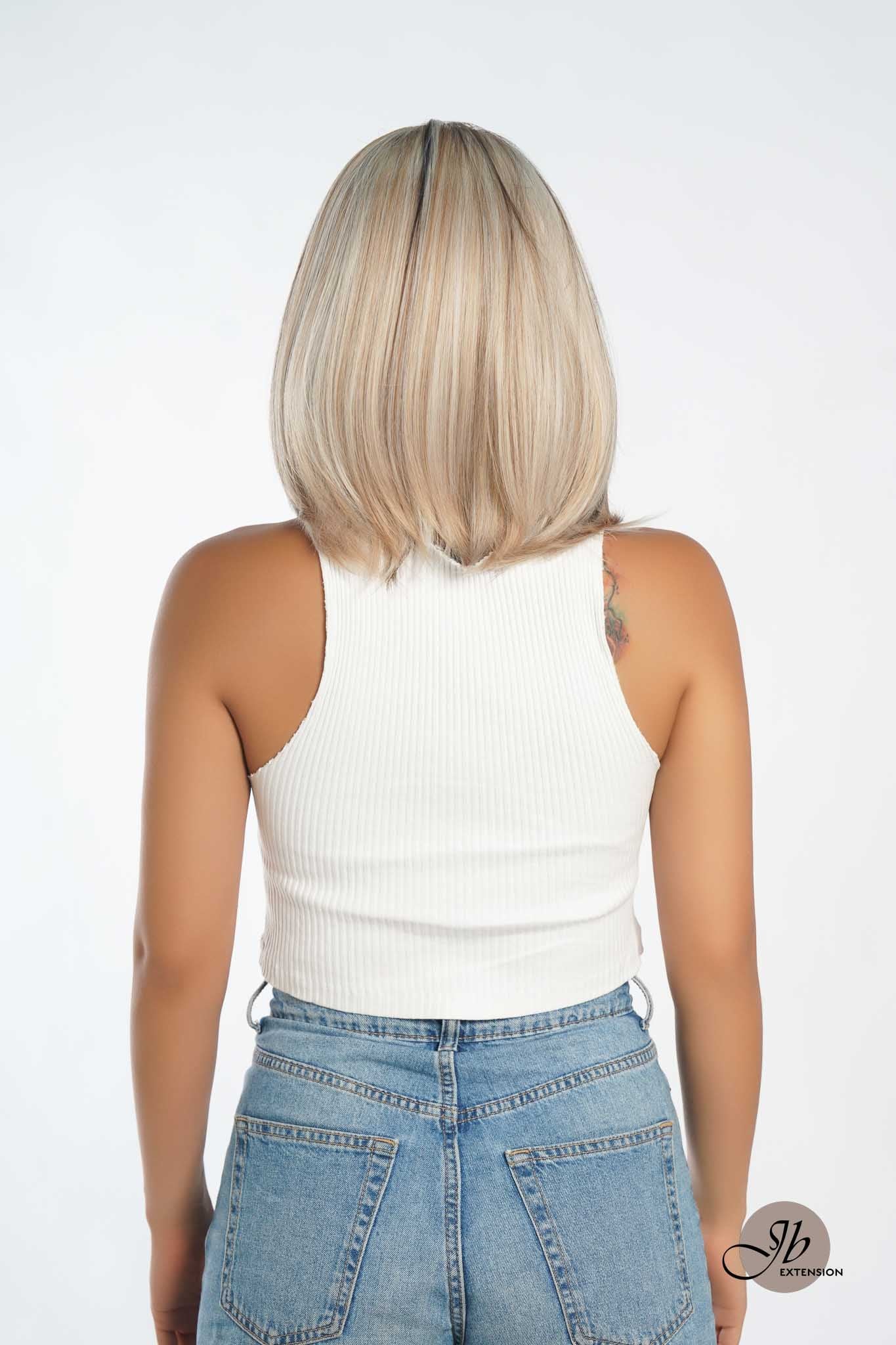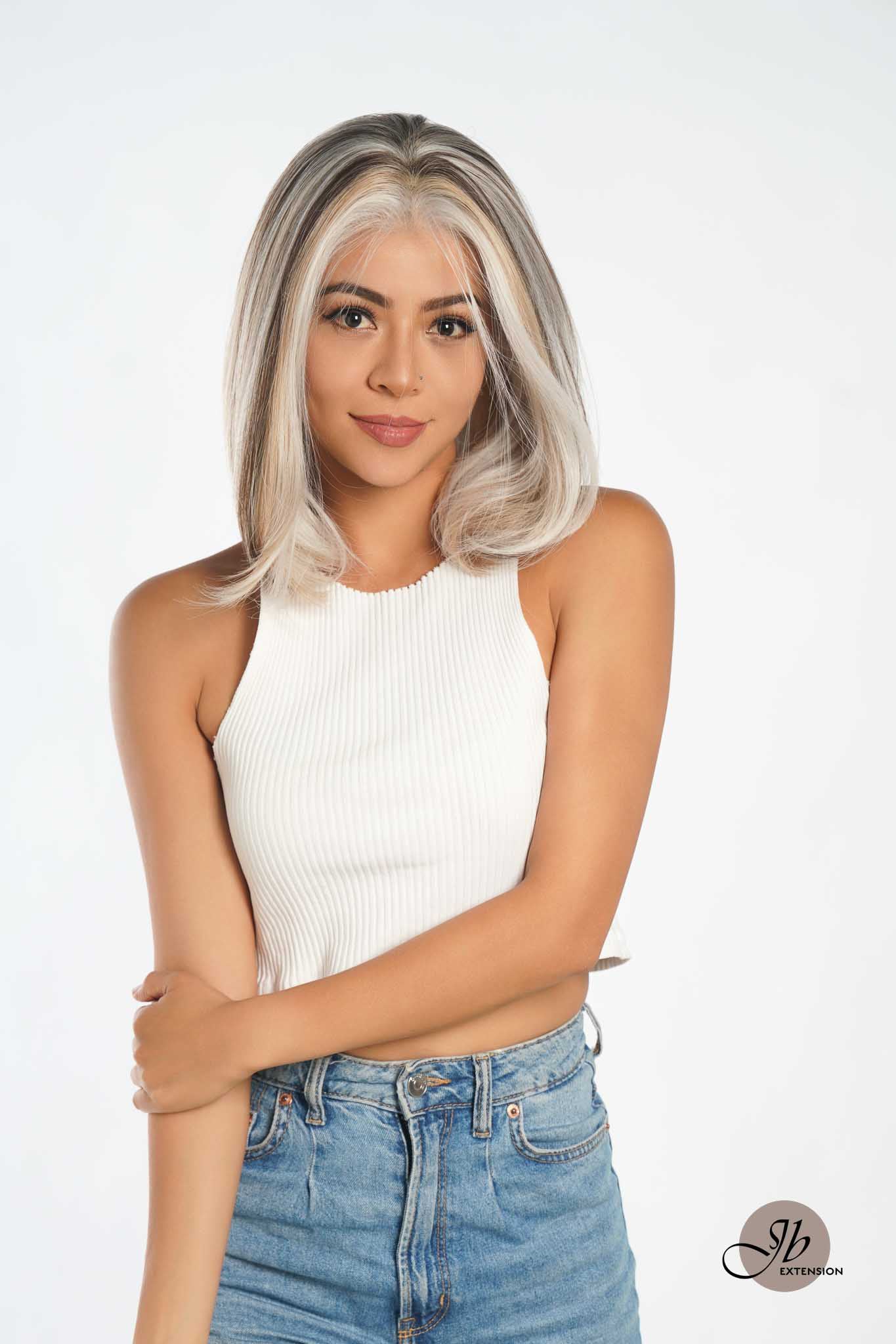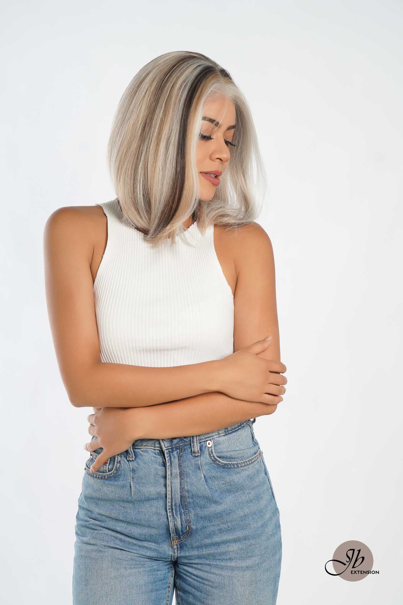 JBEXTENSION 12 Inches Bob Cut Mix Color With Blonde Brown Highlight Free Part Pre-Cut Frontlace Glueless Wig DOLPHIN CAPPUCCINO