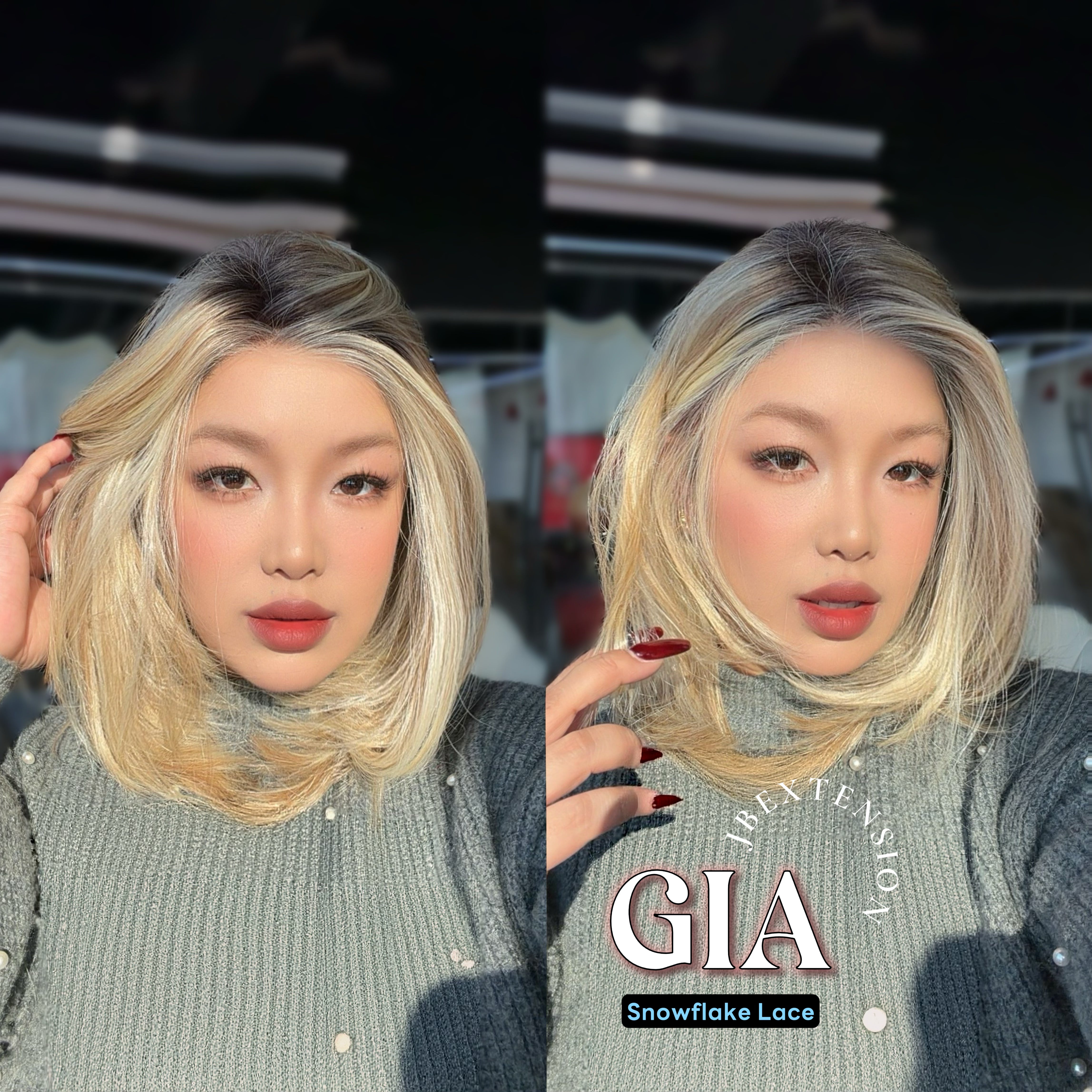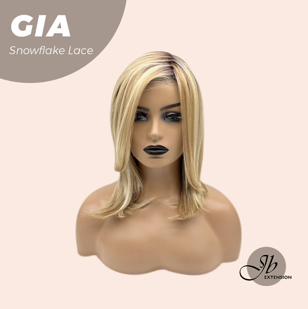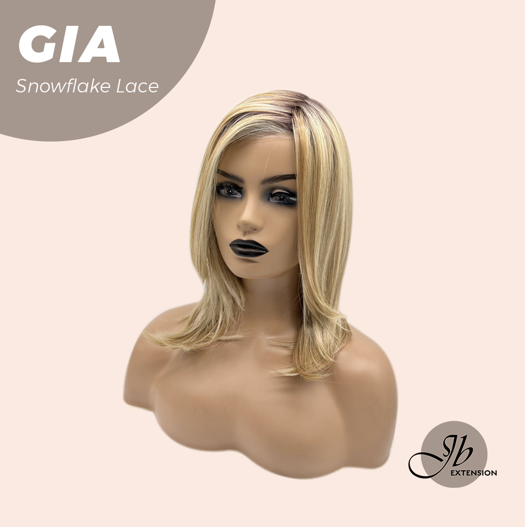 JBEXTENSION 16 Inches Mix Blonde Pre-Cut Side Part Snowflake Lace Frontlace Glueless Wig GIA【BENDY EAR TABS】