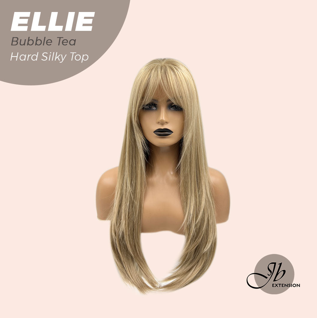 JBEXTENSION 26 Inches Scalpiana Bubble Tea Wolf Cut 3.5X4 Hard Silky Top Natural Scalp Effect Wig With Bangs ELLIE BUBBLE TEA Silk Top