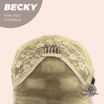 JBEXTENSION 28 Inches Blonde Curly Fiber X, Tangle Less Pre-Cut Free Part Frontlae Glueless Wig BECKY