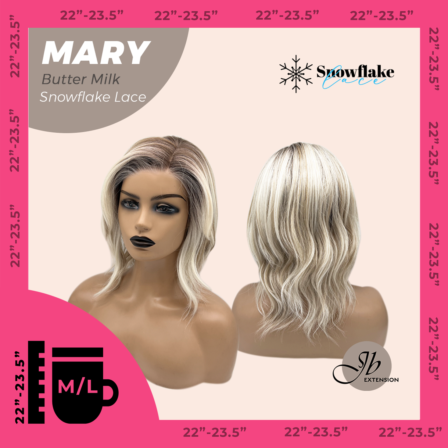 JBEXTENSION 14 Inches Butter Milk Pre-Cut Side Part Snowflake Lace Frontlace Glueless Wig MARY BUTTER MILK【BENDY EAR TABS】- M/L