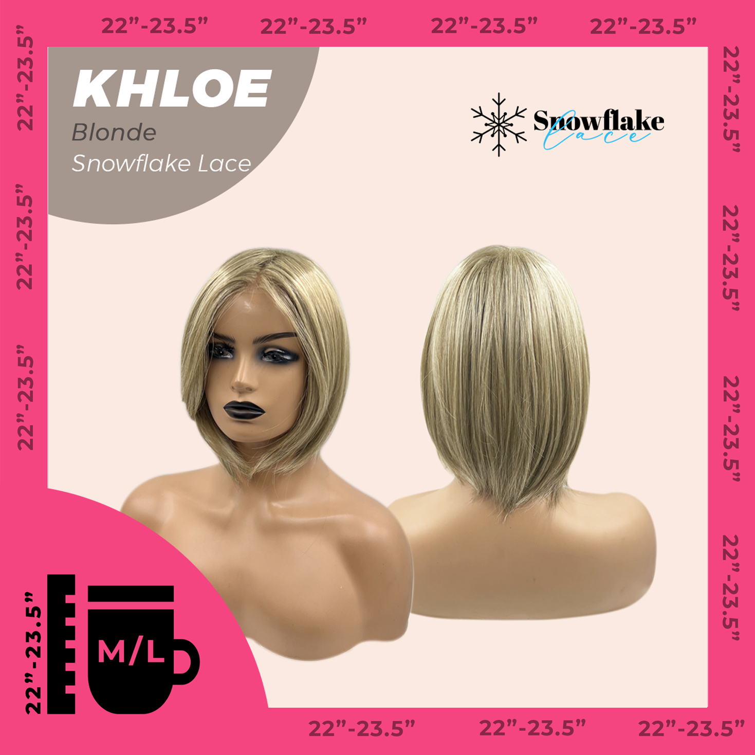 JBEXTENSION 12 Inches Bob Cut Blonde Pre-Cut Snowflake Lace Frontlace Glueless Wig KHLOE BLONDE【PERMATEASE】【BENDY EAR TABS】- M/L