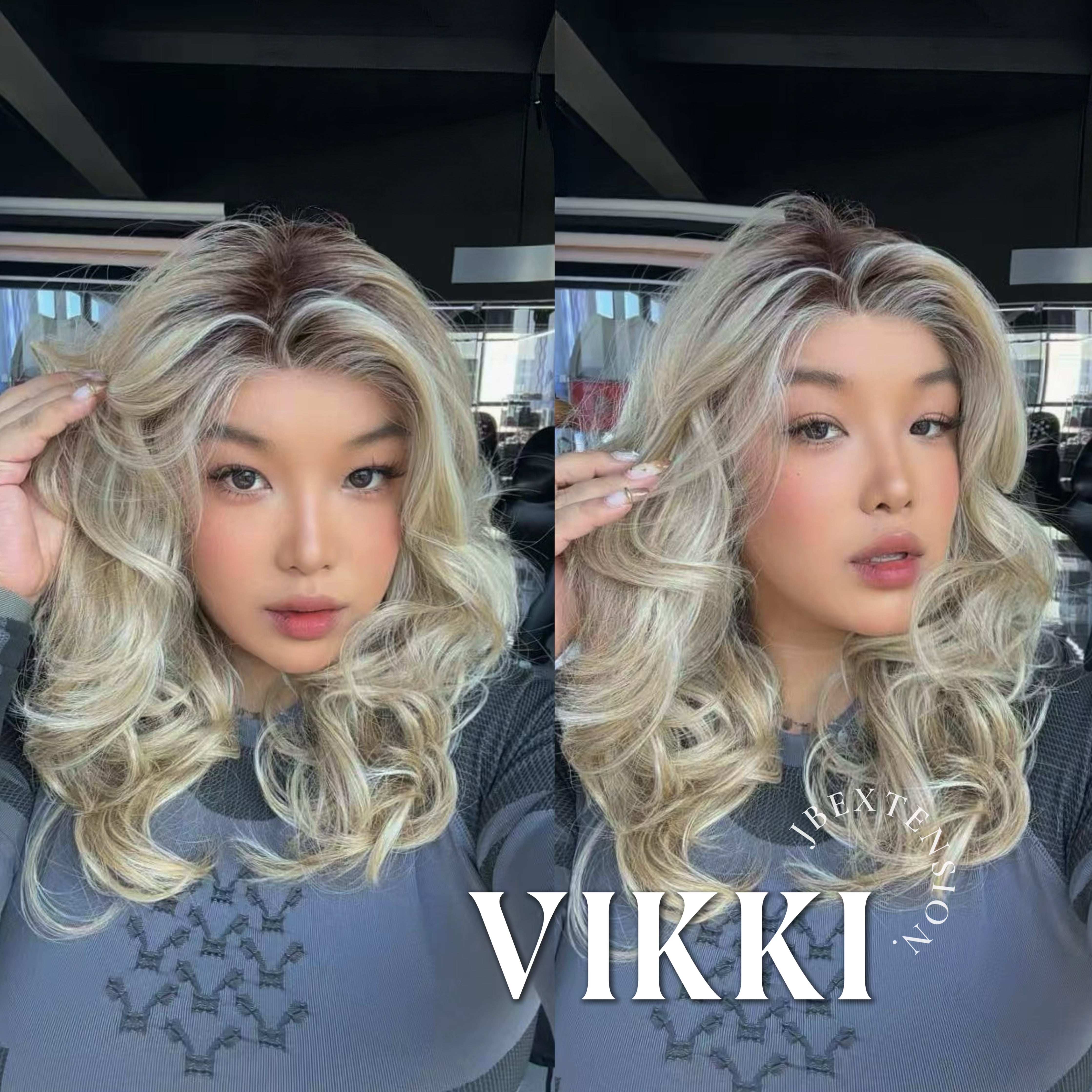 JBEXTENSION 16 Inches Blonde Wave Top Snowflake Lace Glueless Wig SIAN BLONDE【PERMATEASE】【BENDY EAR TABS】