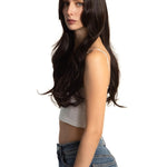 Get the Influencer Look with 26 Inches Curly Women Tea Black Darkest Brown Wig Pre-Cut Frontlace Glueless Wig EMMIE