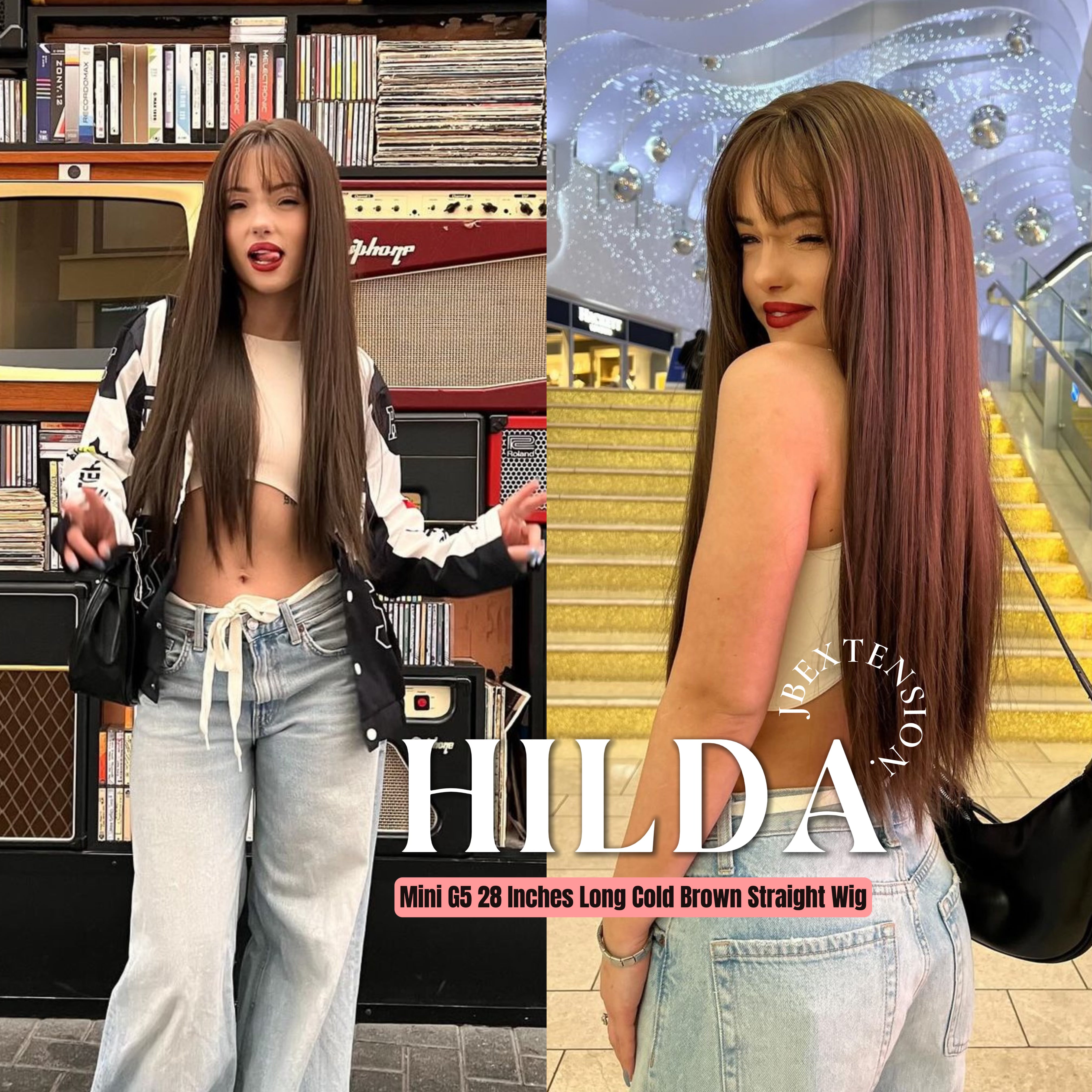 Get this look with our 28 Inches Long Cold Brown Straight Mini G5 Wig With Bangs HILDA