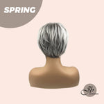 JBEXTENSION Pixie Cut Silver Half Real Human Hair Half Futura Fiber Fashion Women Wig SPRING