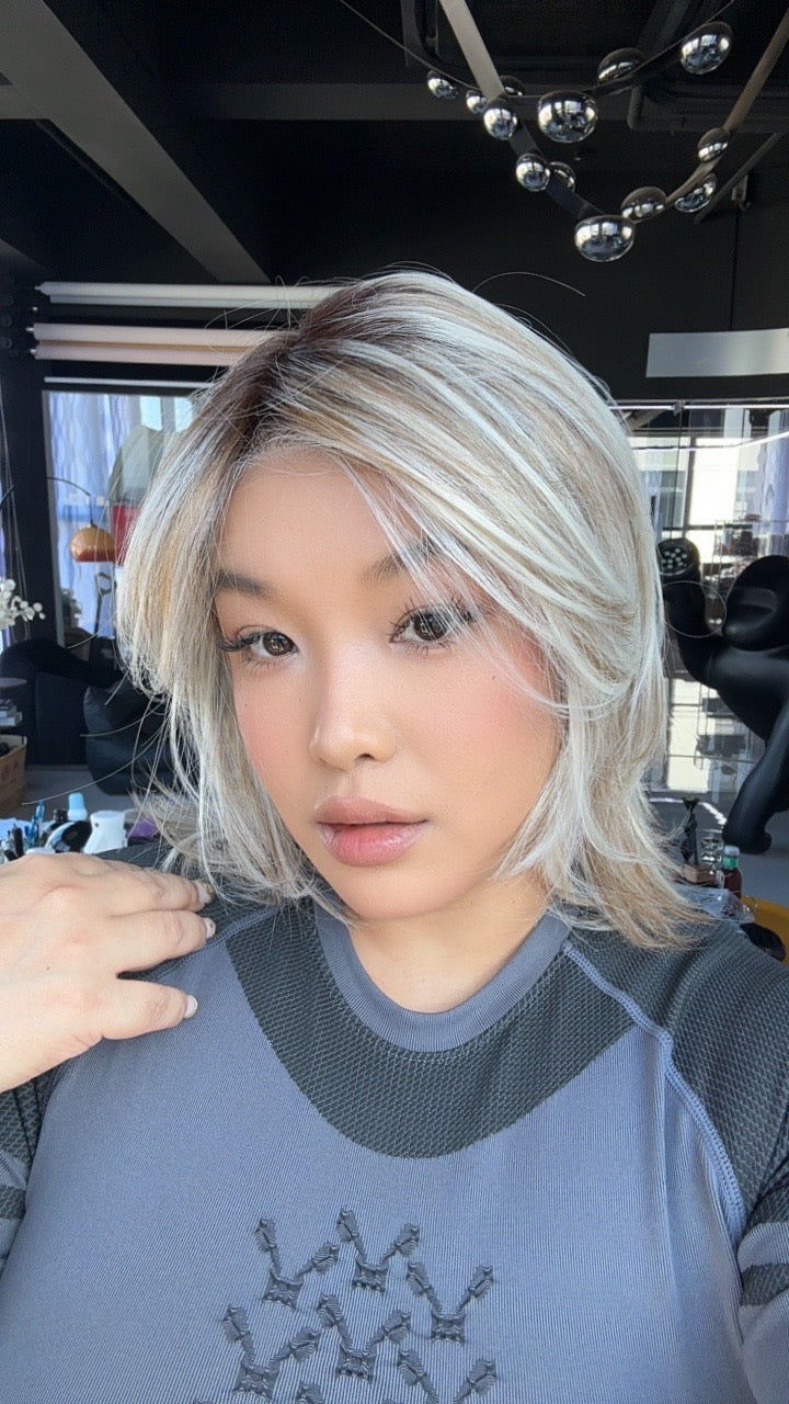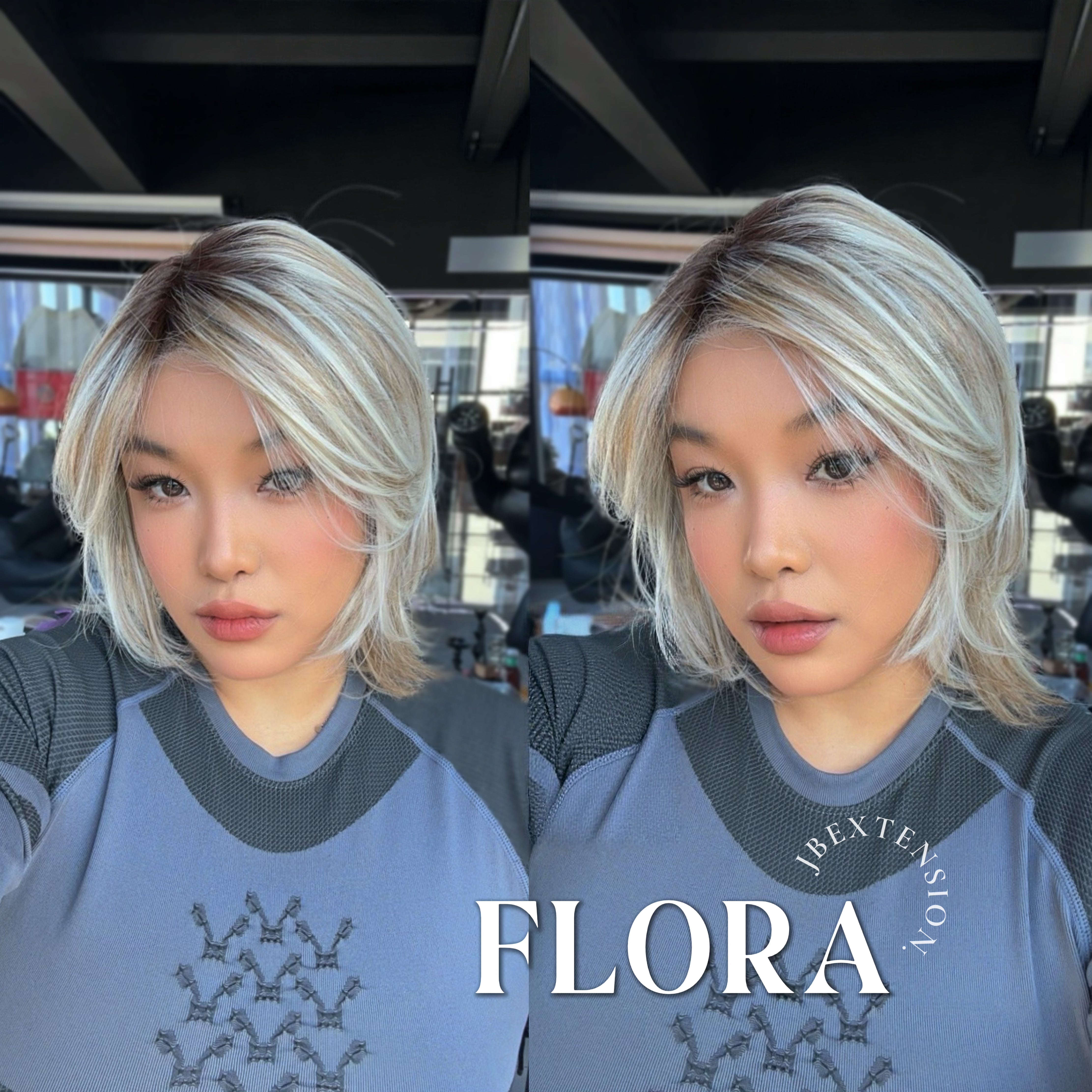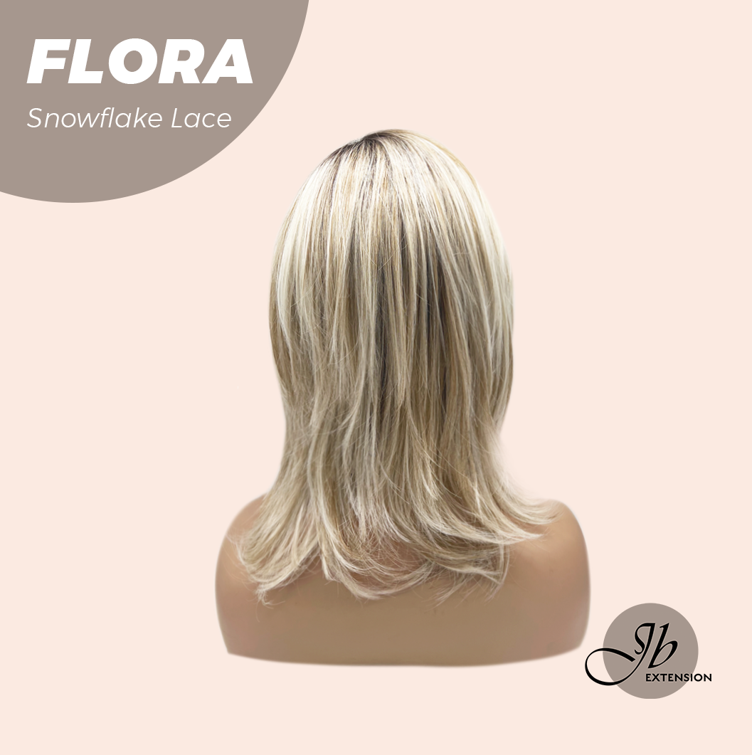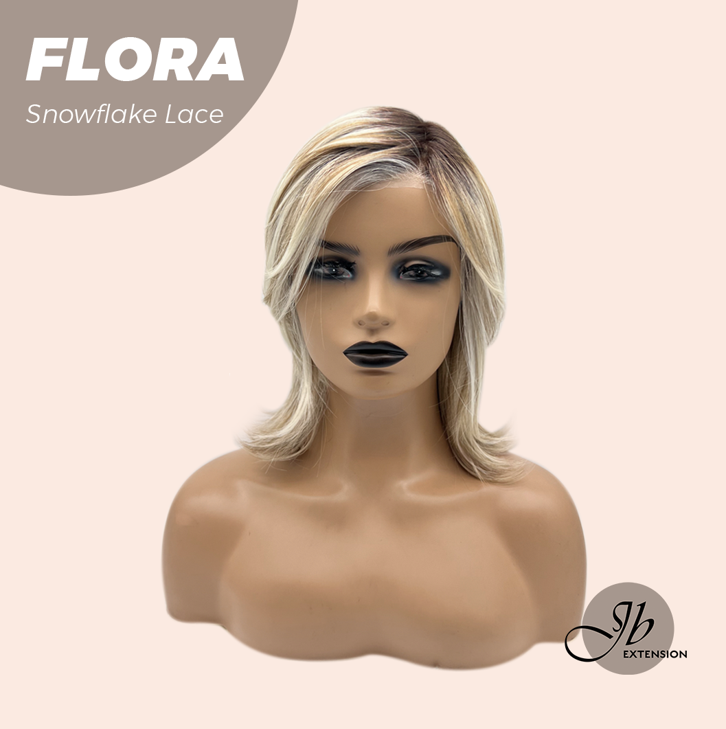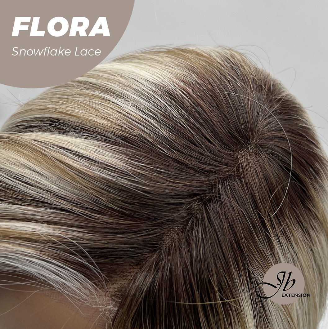 JBEXTENSION 13 Inches Mix Blonde Pre-Cut Side Part Snowflake Lace Frontlace Glueless Wig FLORA【BENDY EAR TABS】