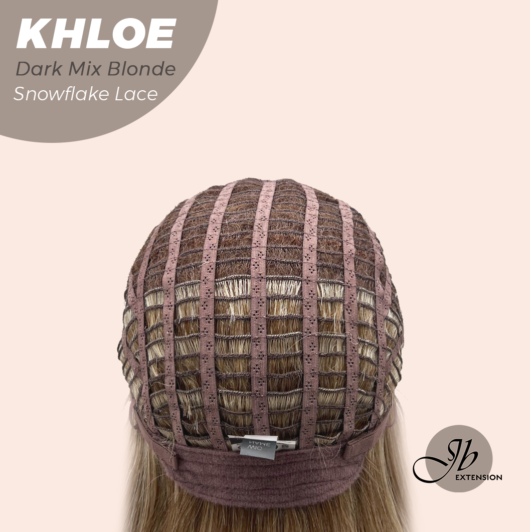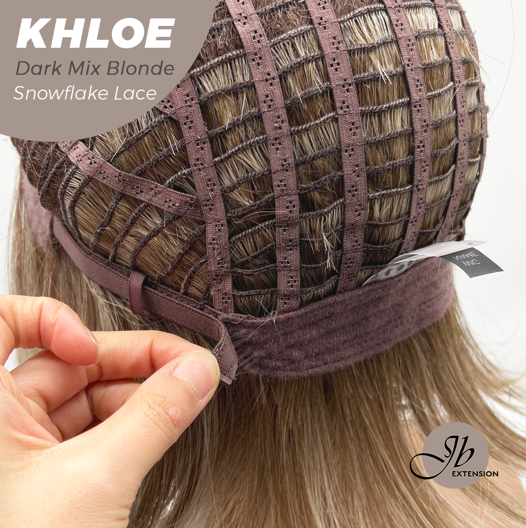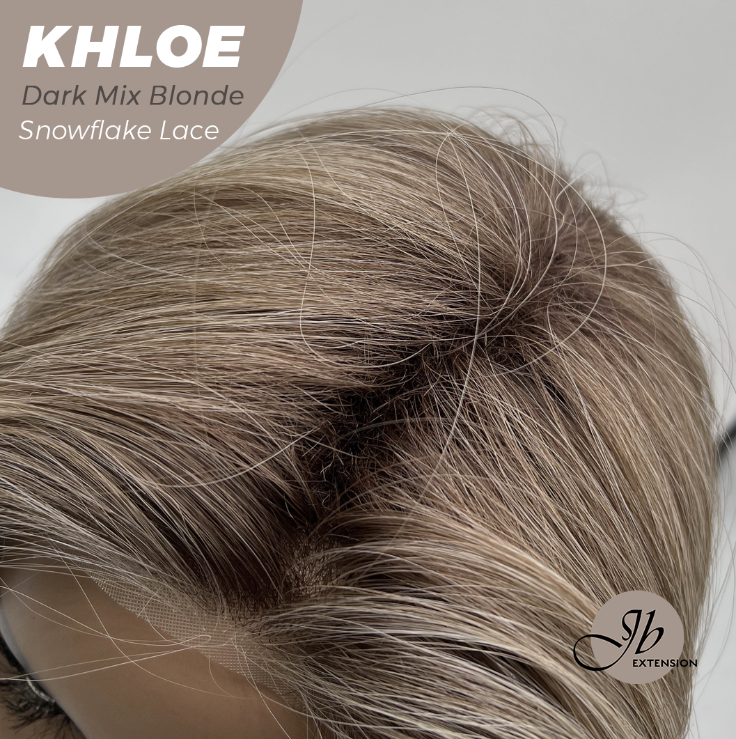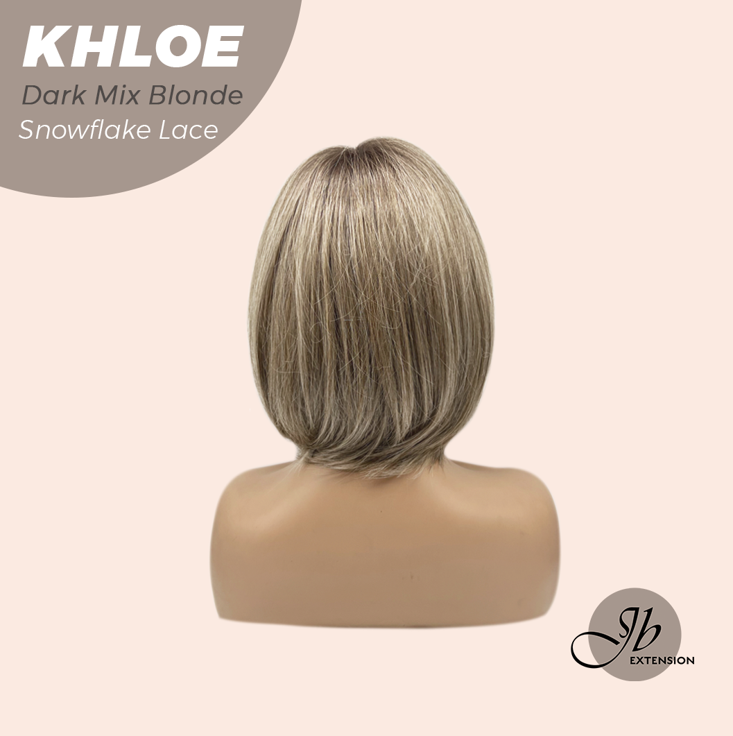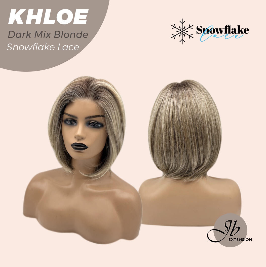 JBEXTENSION 12 Inches Bob Cut Dark Mix Blonde Pre-Cut Snowflake Lace Frontlace Glueless Wig KHLOE DARK MIX BLONDE【PERMATEASE】【BENDY EAR TABS】- M/L