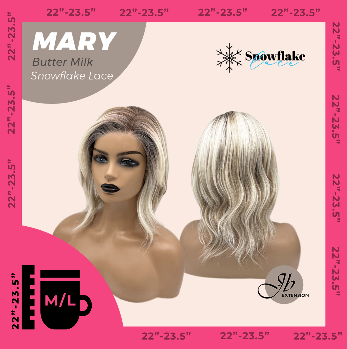 JBEXTENSION 14 Inches Butter Milk Pre-Cut Side Part Snowflake Lace Frontlace Glueless Wig MARY BUTTER MILK【BENDY EAR TABS】- M/L