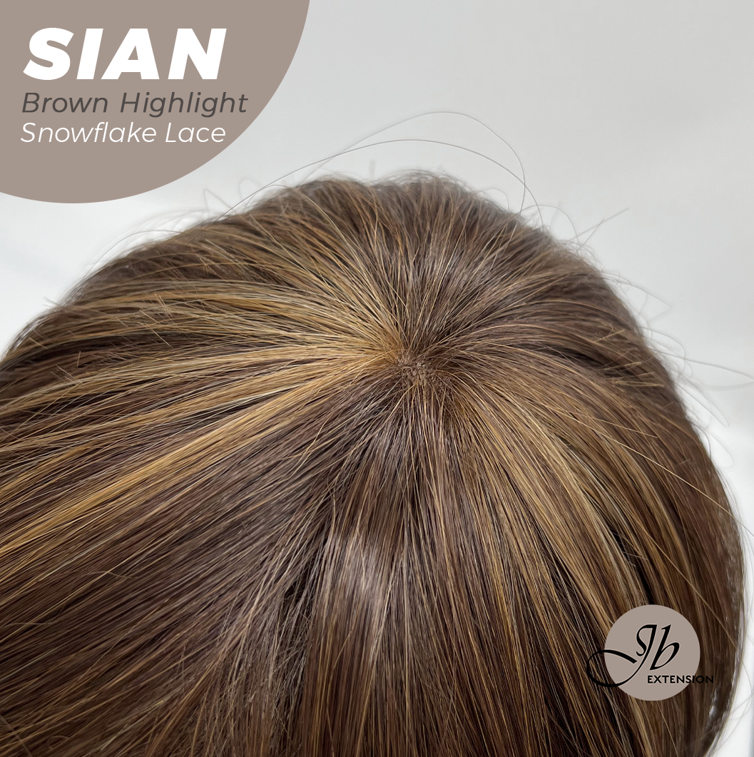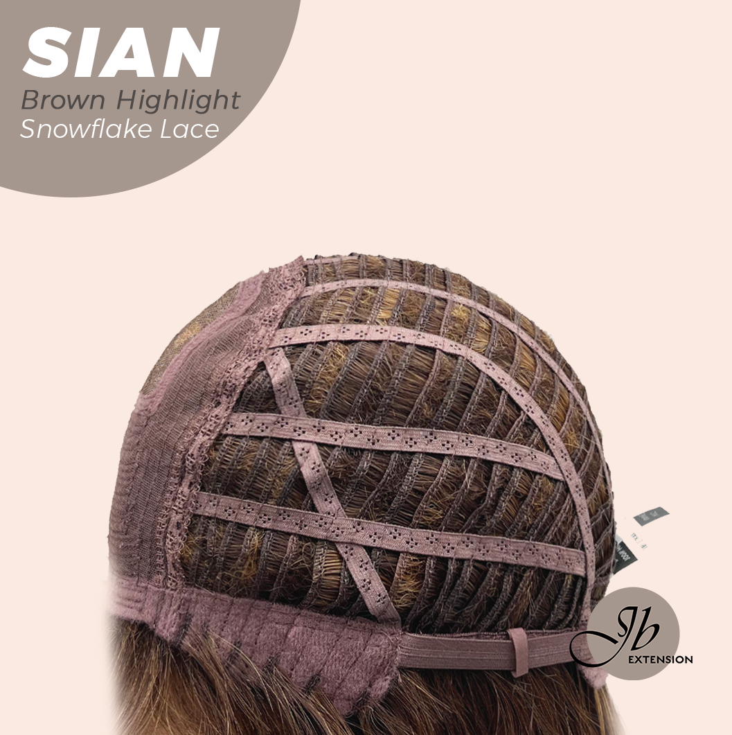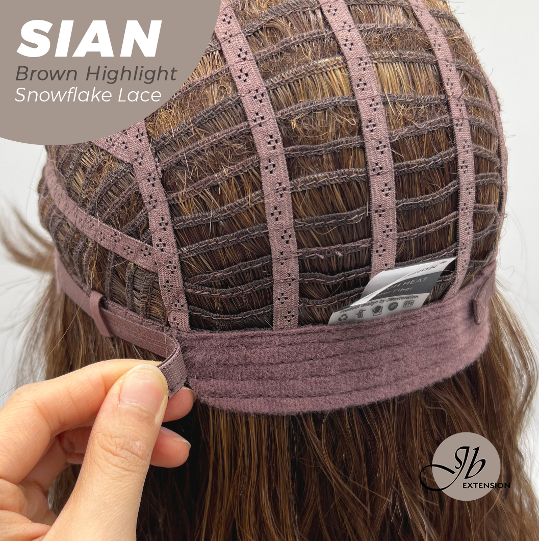 JBEXTENSION 16 Inches Brown Highlight Wave Top Snowflake Lace Glueless Wig SIAN HIGHLIGHT【PERMATEASE】【BENDY EAR TABS】