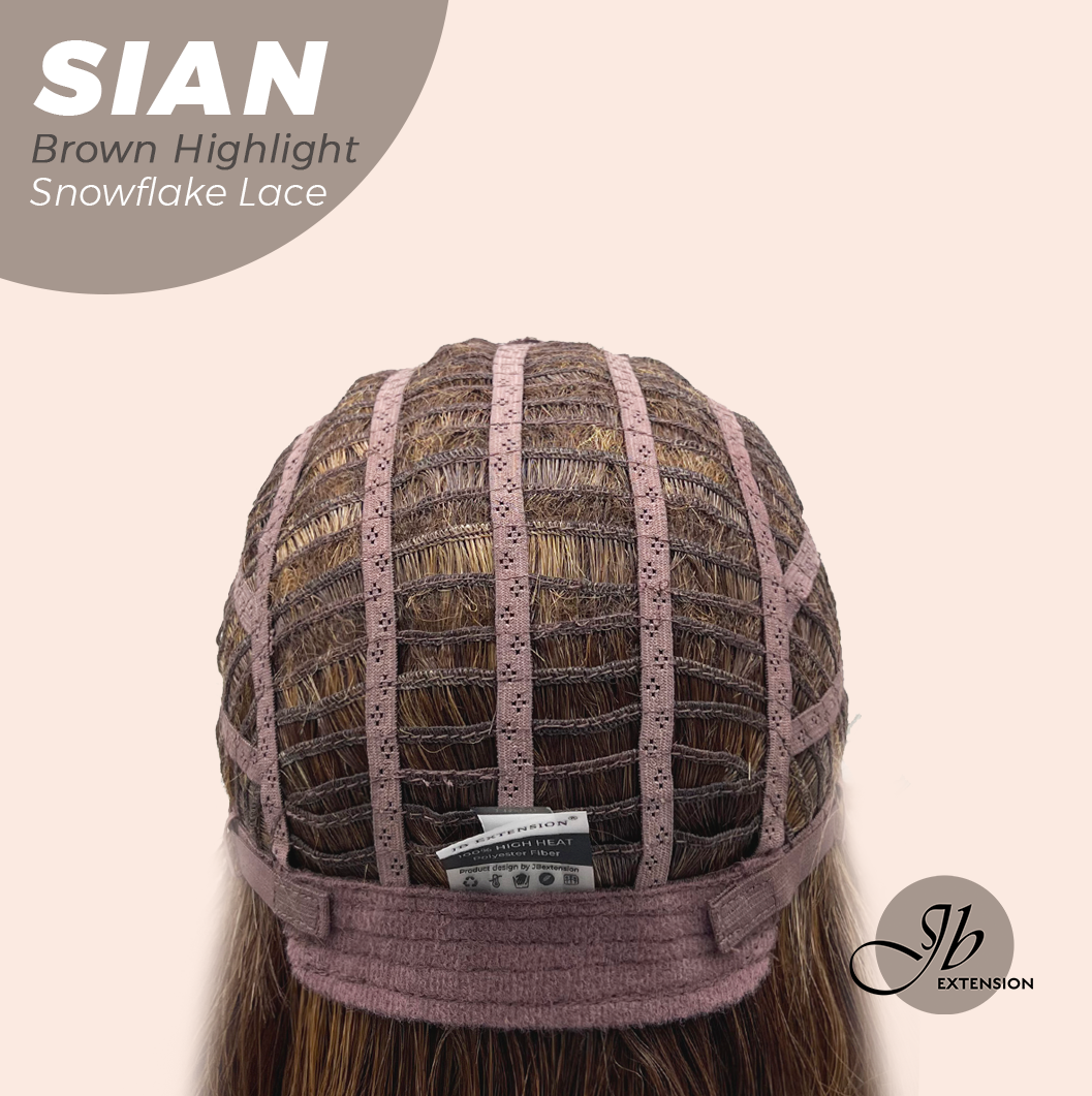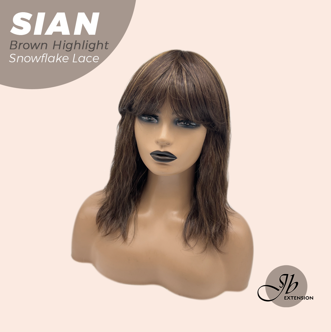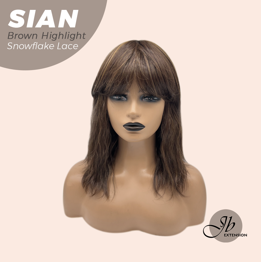 JBEXTENSION 16 Inches Brown Highlight Wave Top Snowflake Lace Glueless Wig SIAN HIGHLIGHT【PERMATEASE】【BENDY EAR TABS】