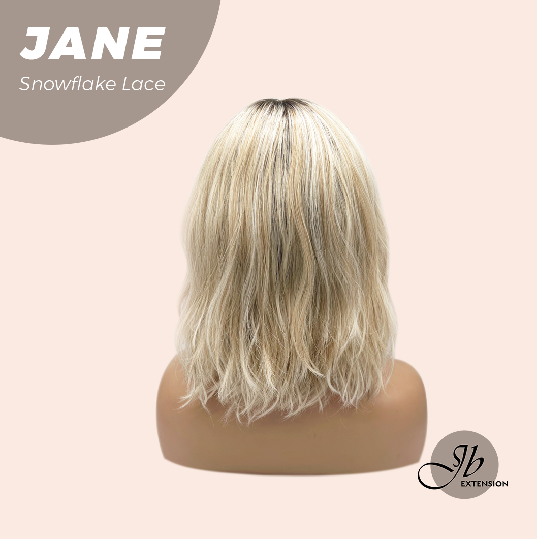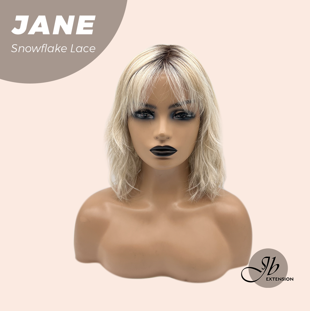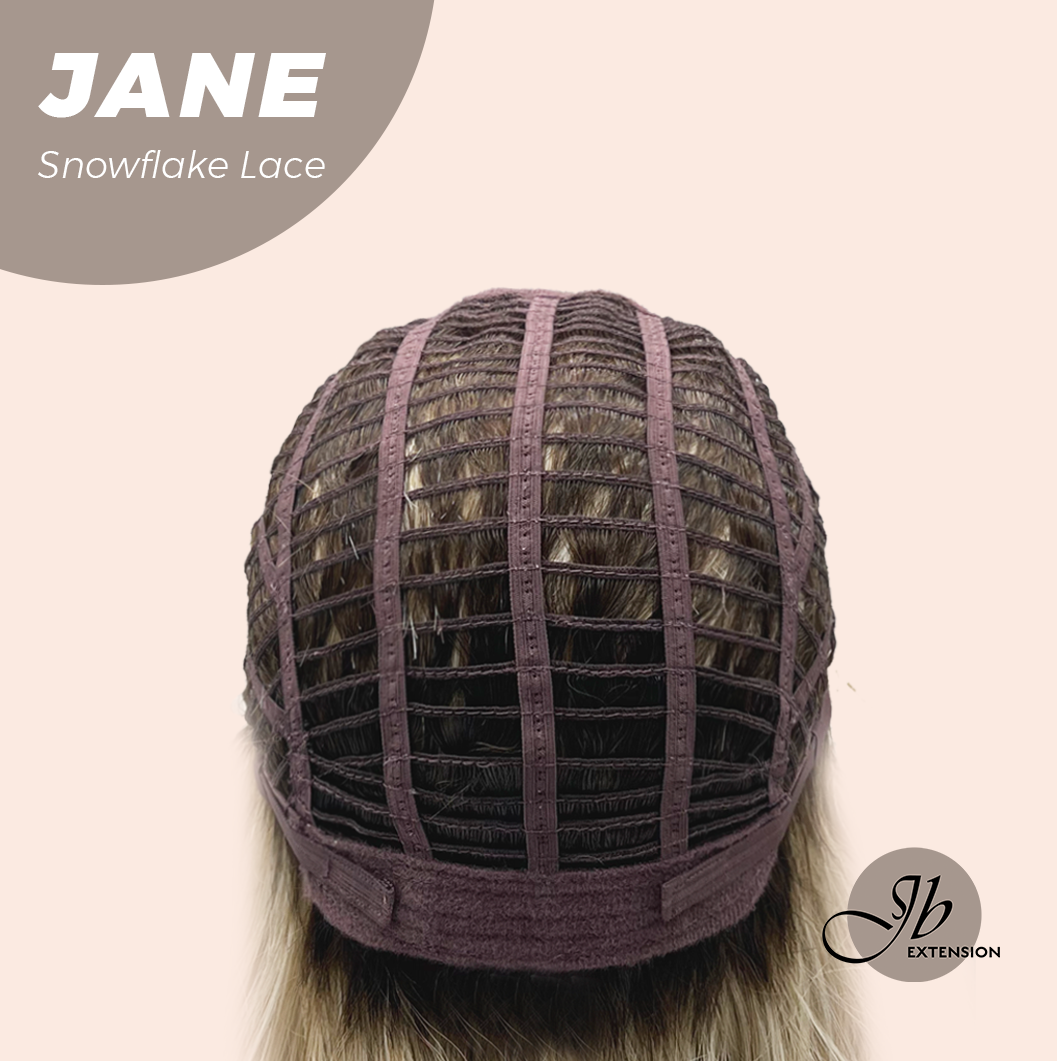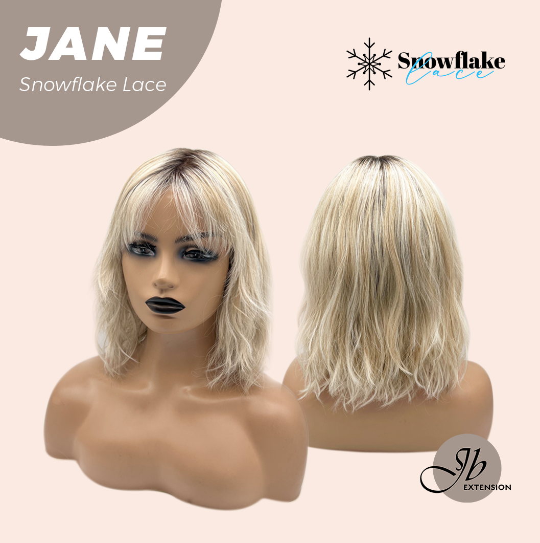 JBEXTENSION 13 Inches Mix Blonde Wave Pre-Cut T Part Snowflake Lace Frontlace Glueless Wig with Bangs JANE【BENDY EAR TABS】