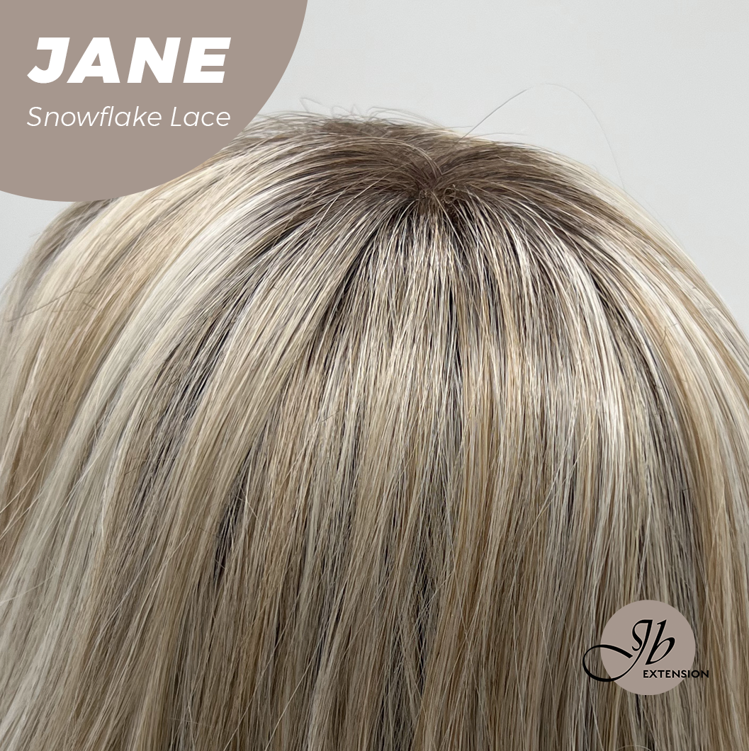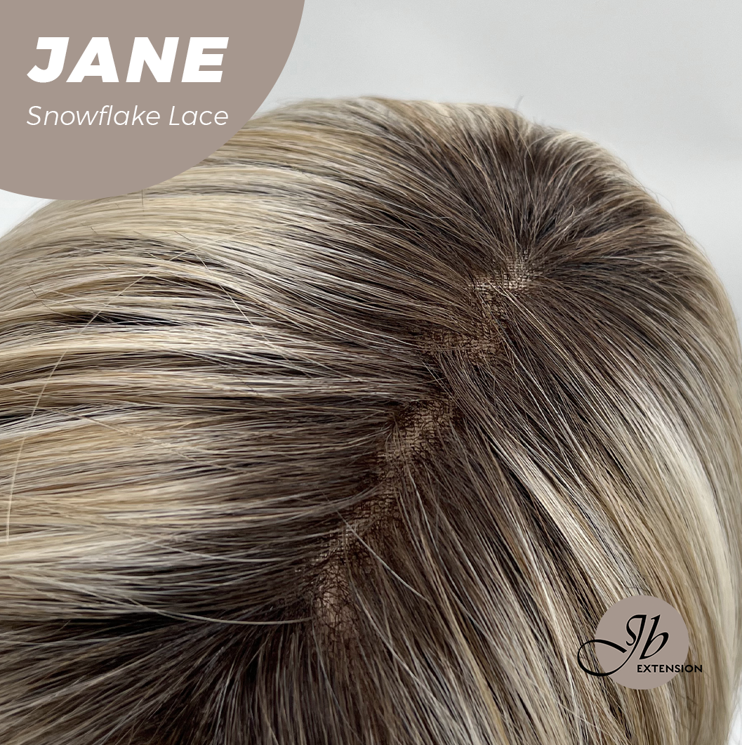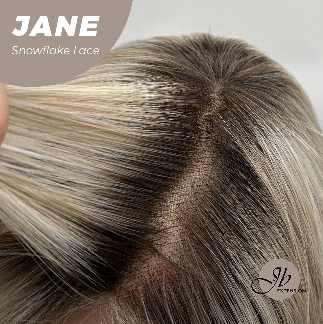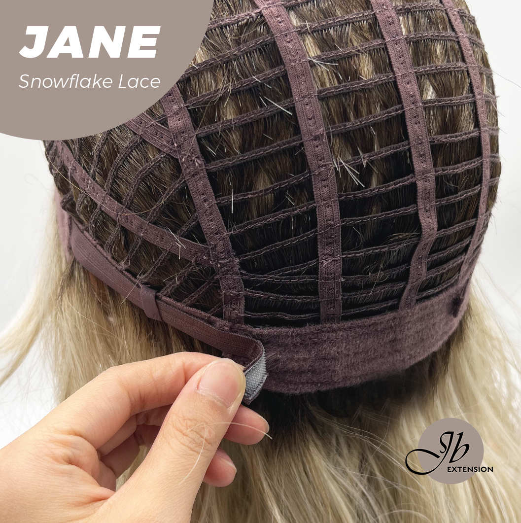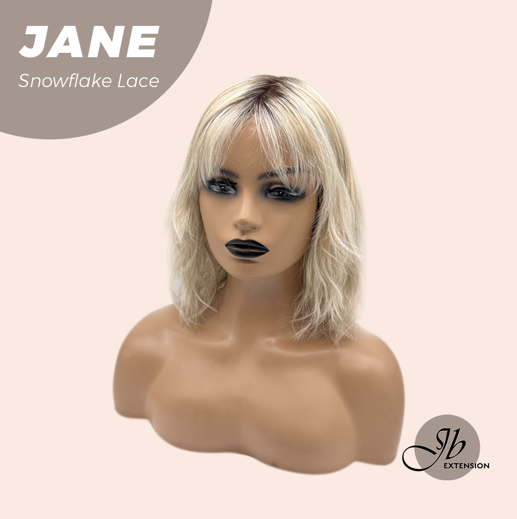 JBEXTENSION 13 Inches Mix Blonde Wave Pre-Cut T Part Snowflake Lace Frontlace Glueless Wig with Bangs JANE【BENDY EAR TABS】