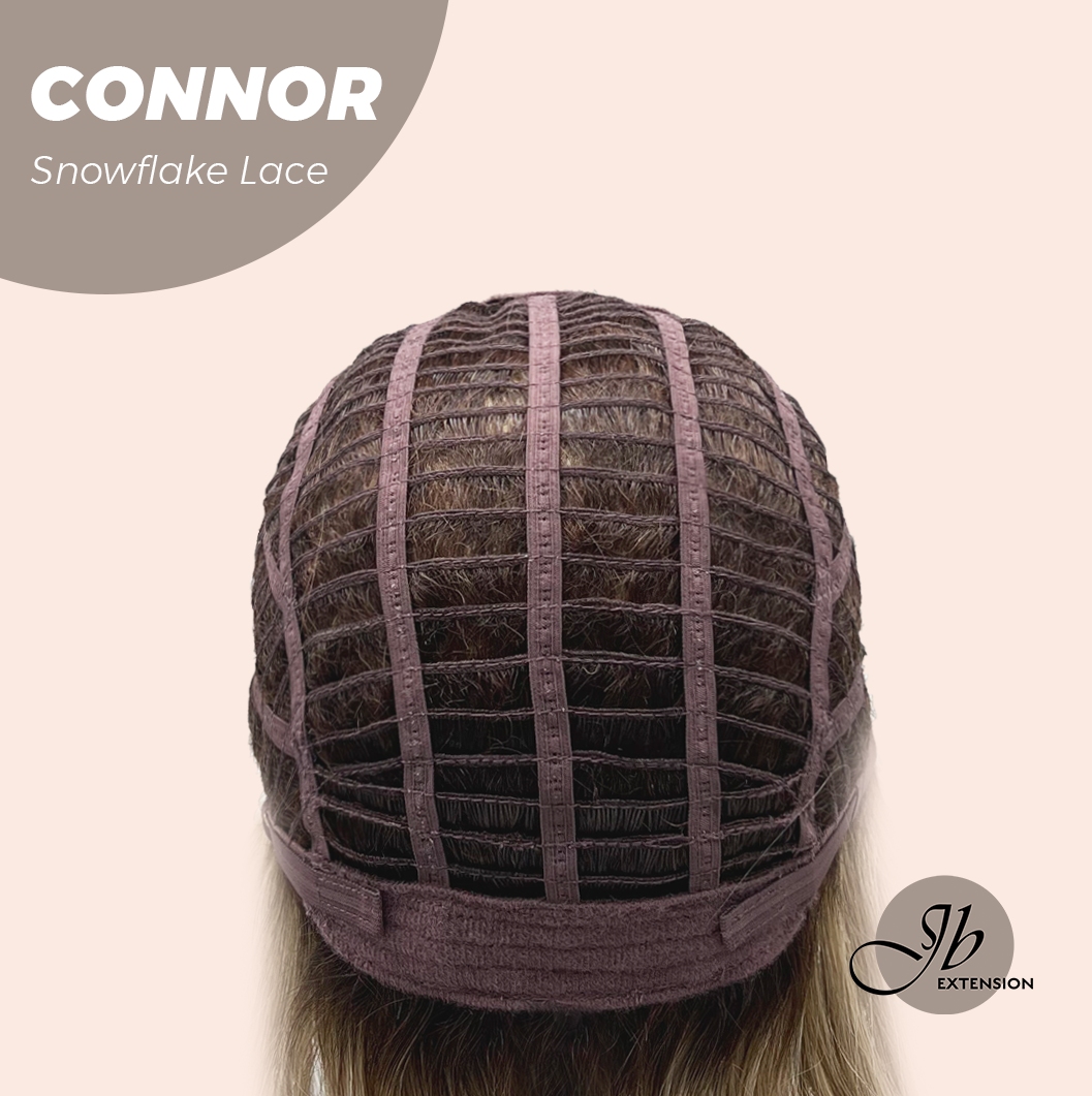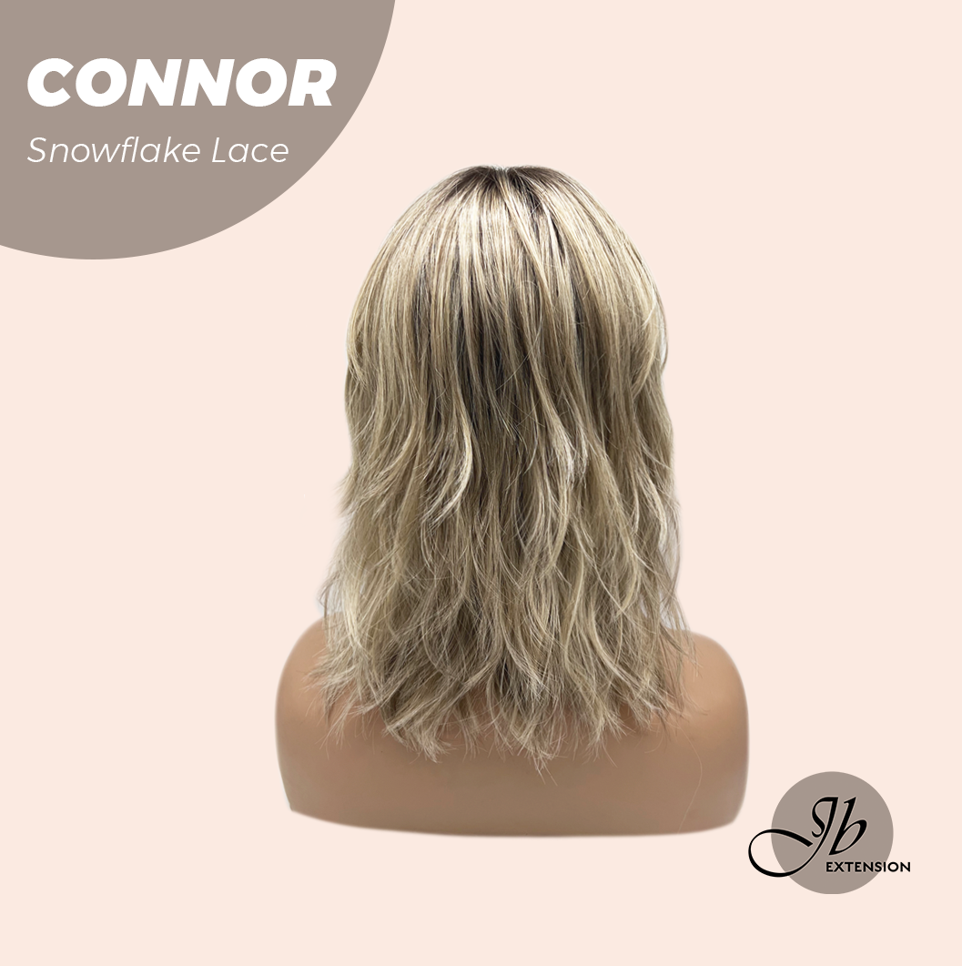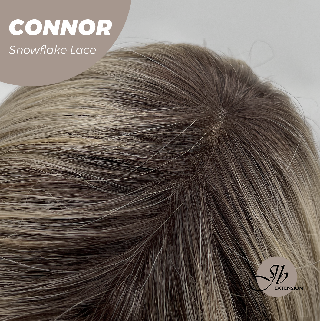 JBEXTENSION 13 Inches Dark Mix Blonde Curly Pre-Cut T Part Snowflake Lace Frontlace Glueless Wig CONNOR【BENDY EAR TABS】