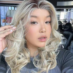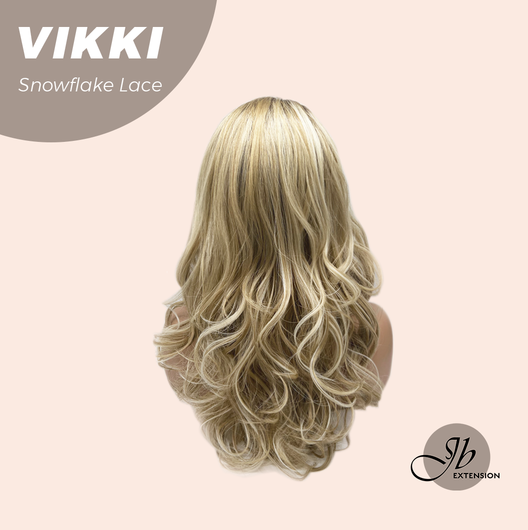 JBEXTENSION 18 Inches Mix Blonde Long Pre-Cut T Part Snowflake Lace Frontlace Glueless Wig VIKKI【BENDY EAR TABS】