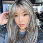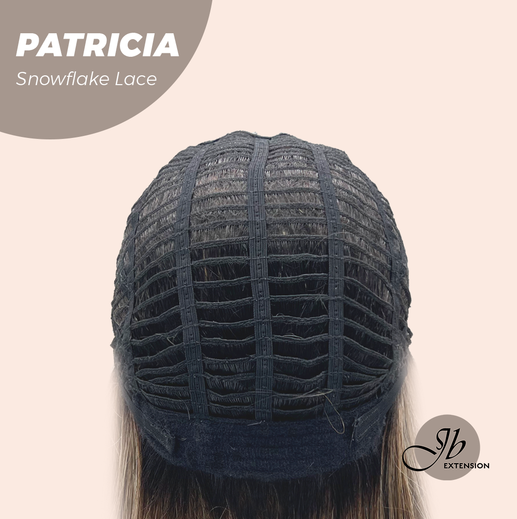 [PRE-ORDER] JBEXTENSION 17 Inches Dark Mix Blonde Pre-Cut T Part Snowflake Lace Frontlace Glueless Wig with Bangs PATRICIA【BENDY EAR TABS】