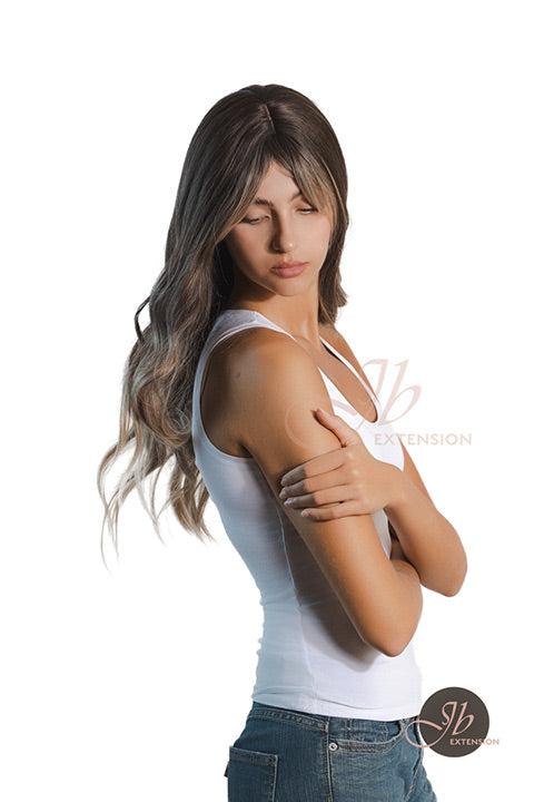 JBEXTENSION 25 Inches Balayage With Dark Root Curly Wig With Bangs DELLA