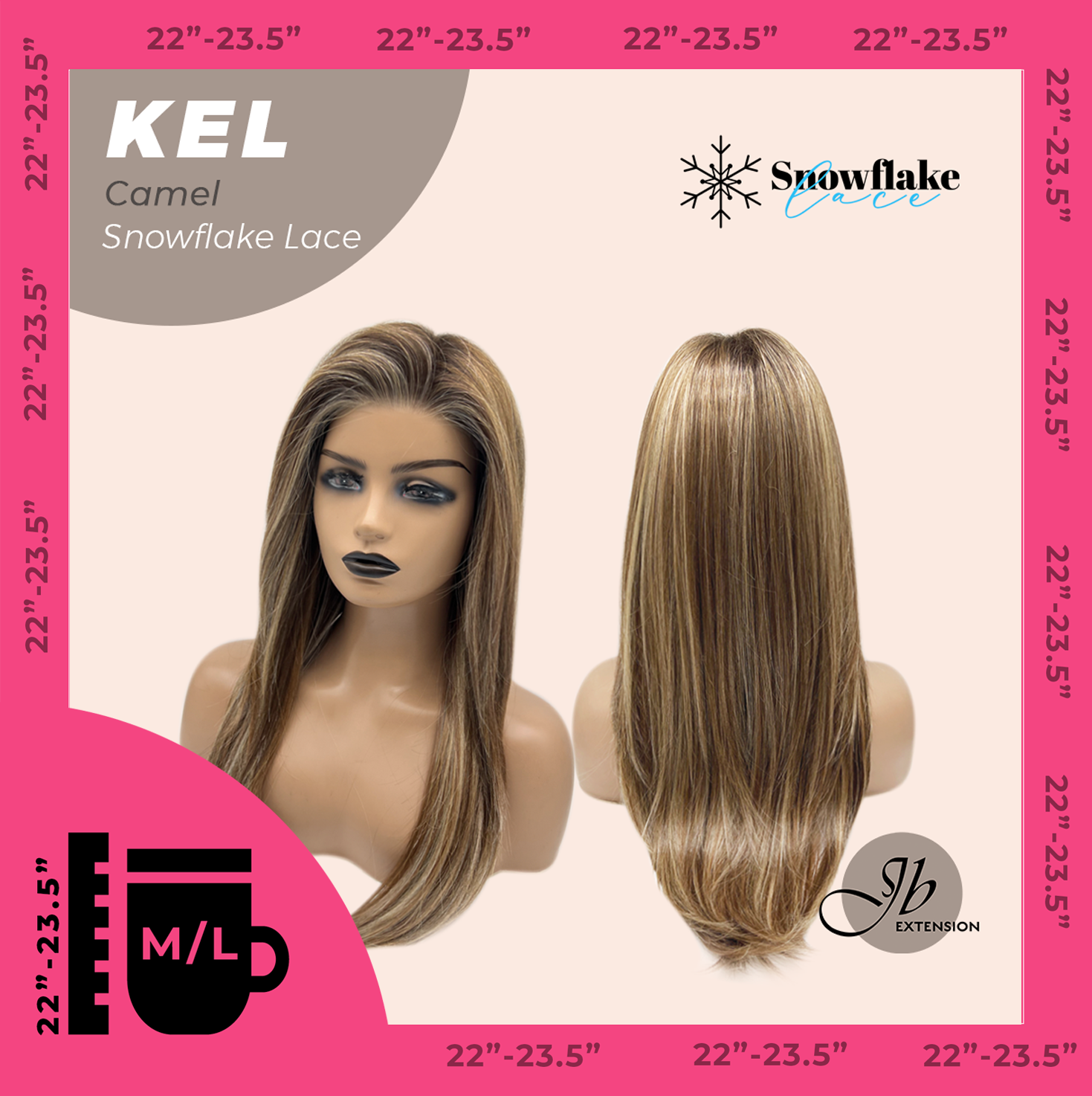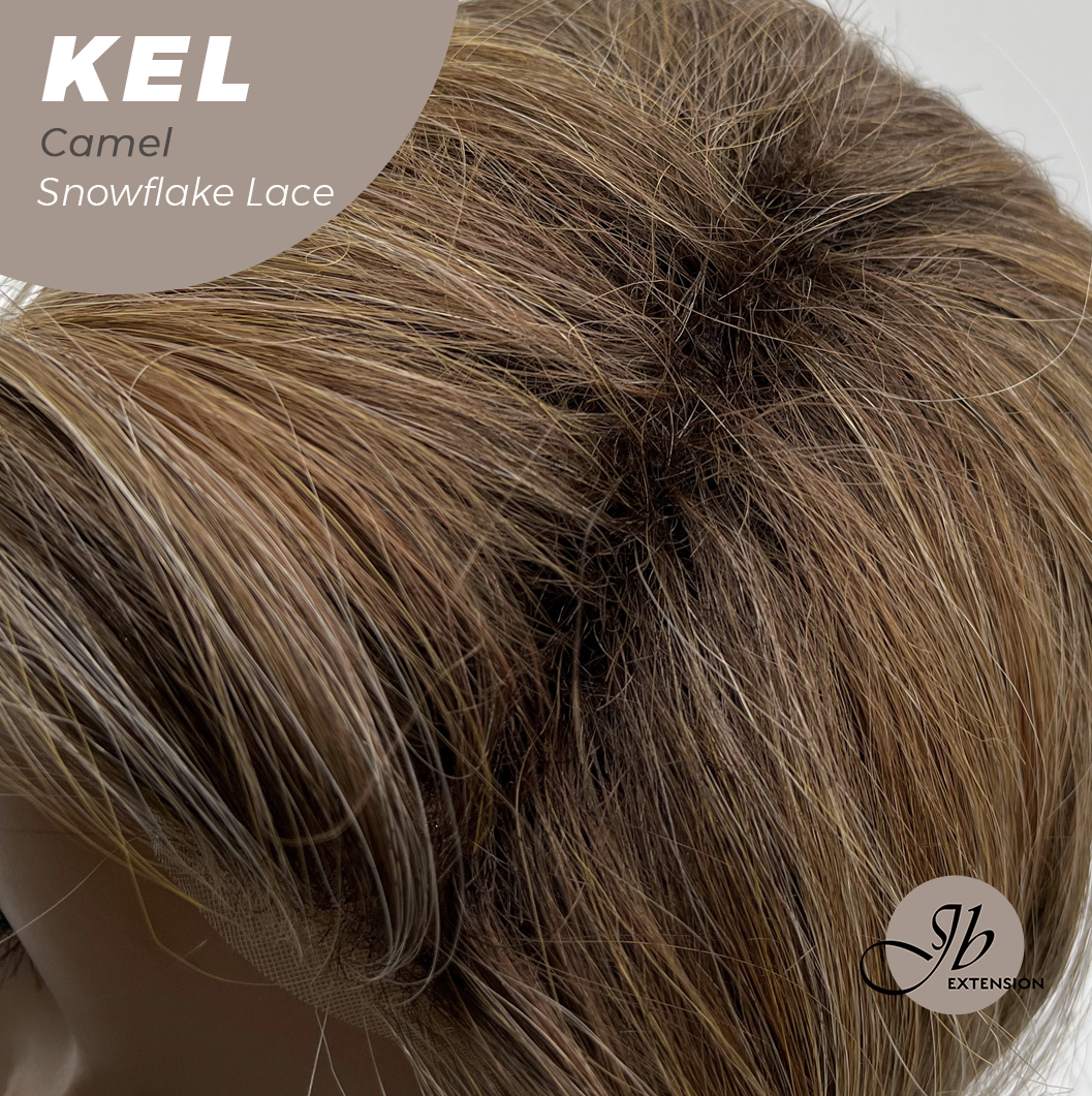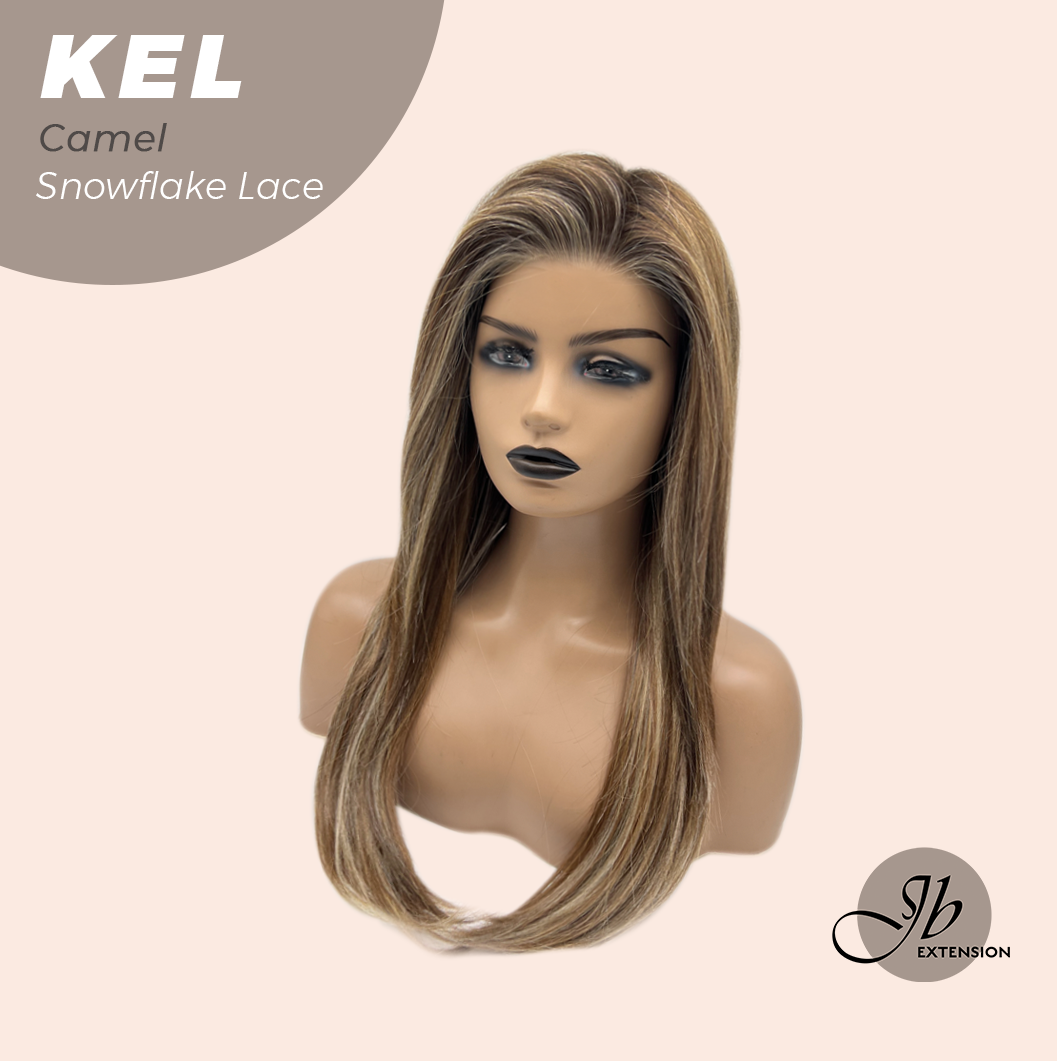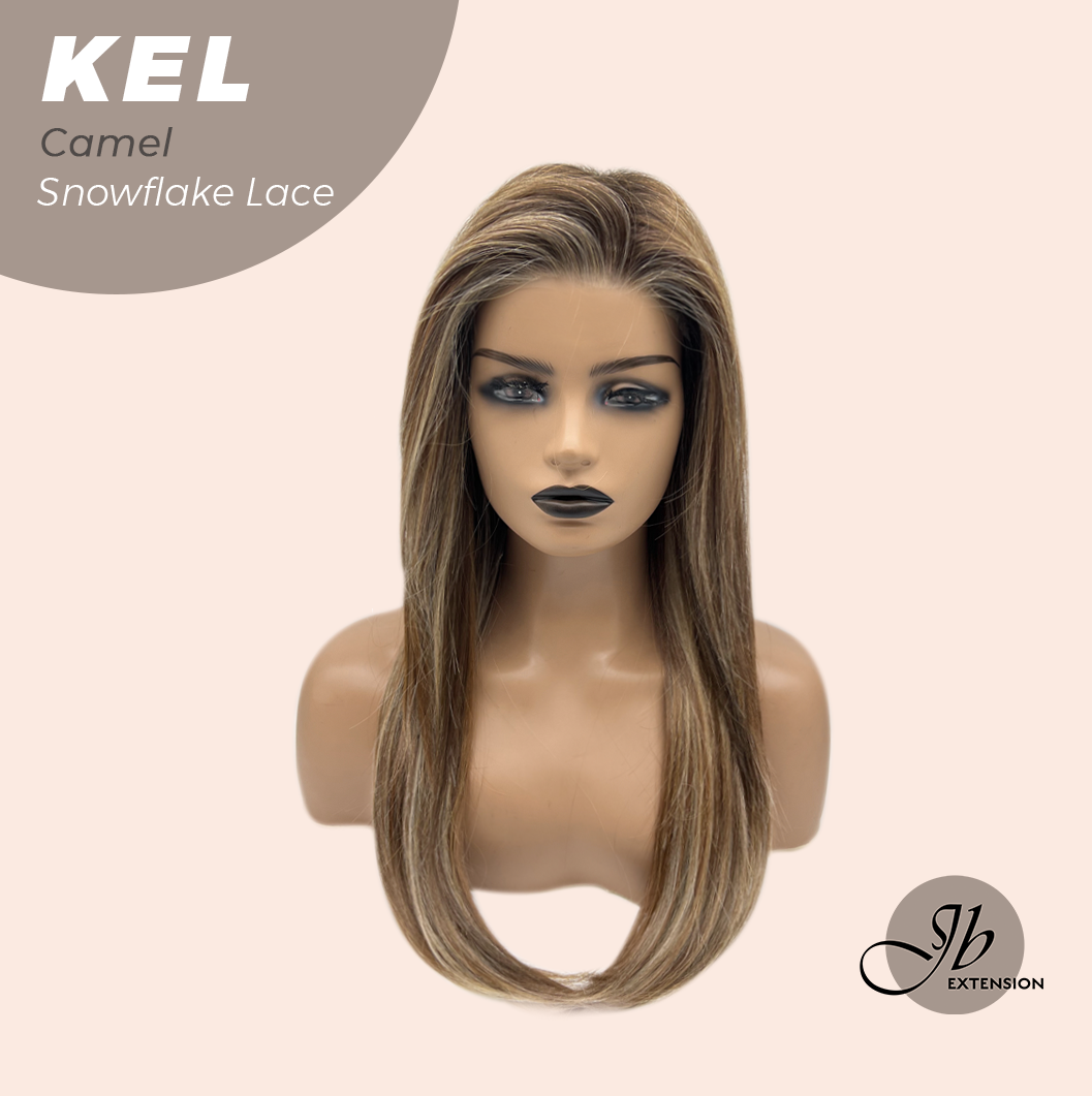 JBEXTENSION 22 Inches Camel Pre-Cut Snowflake Lace Frontlace Glueless Wig KEL CAMEL【PERMATEASE】【BENDY EAR TABS】- M/L