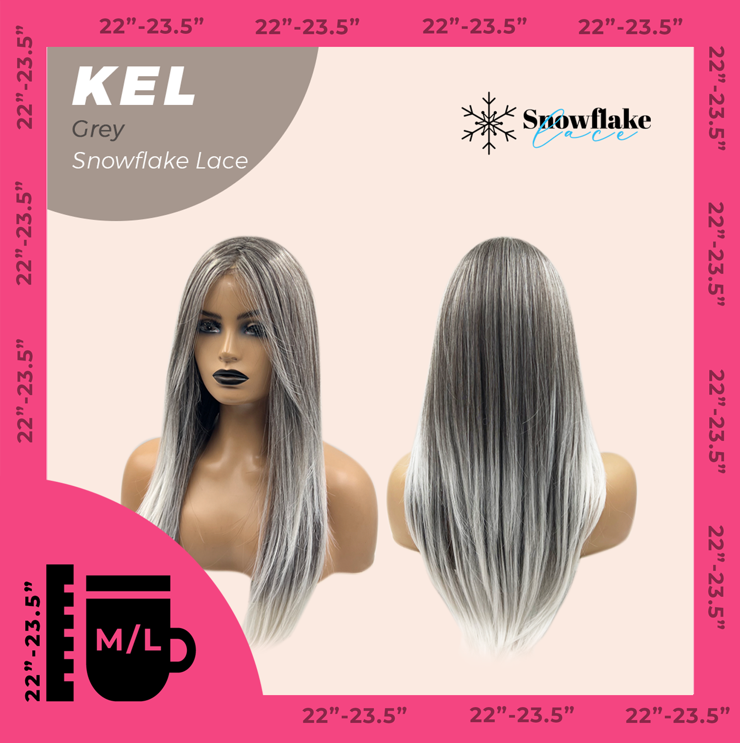 JBEXTENSION 22 Inches Grey Pre-Cut Snowflake Lace Frontlace Glueless Wig KEL GREY【PERMATEASE】【BENDY EAR TABS】- M/L