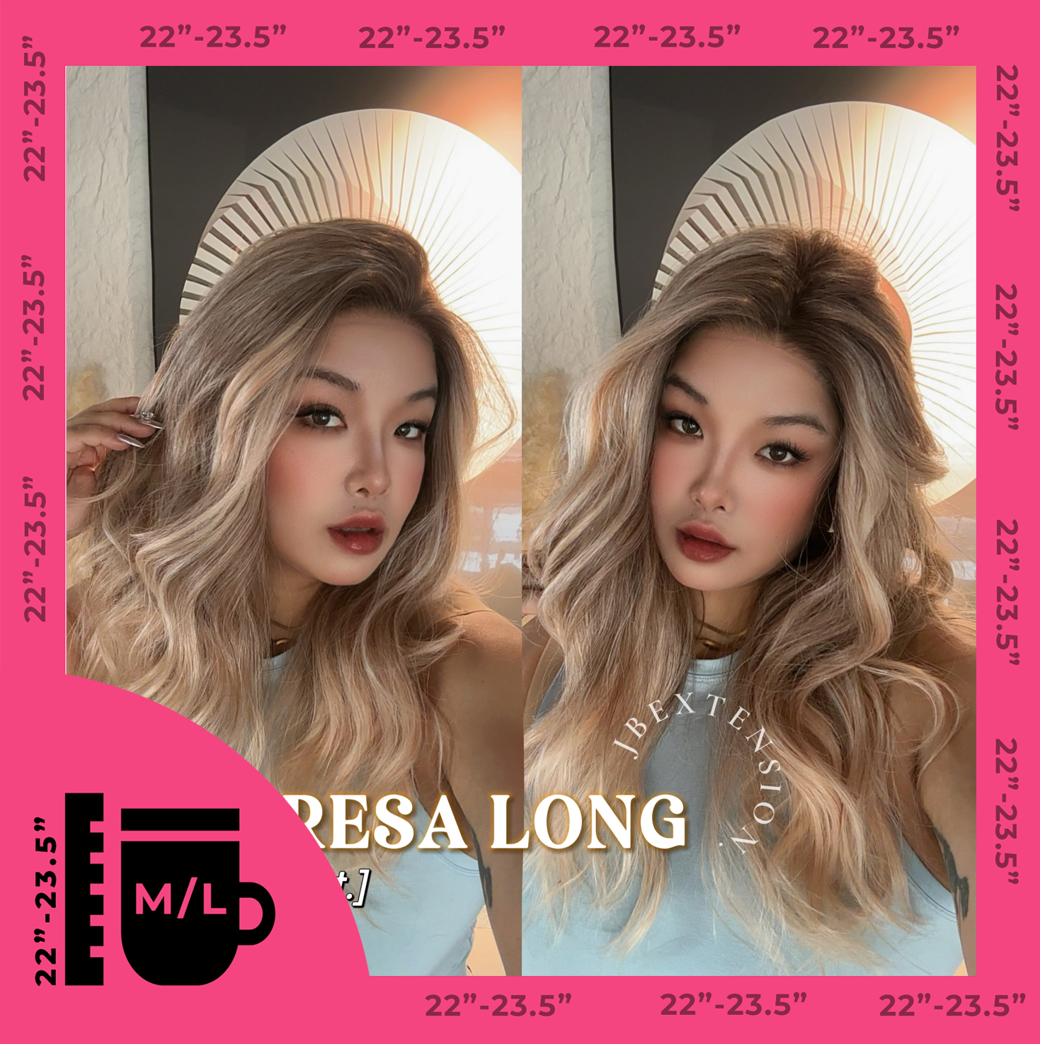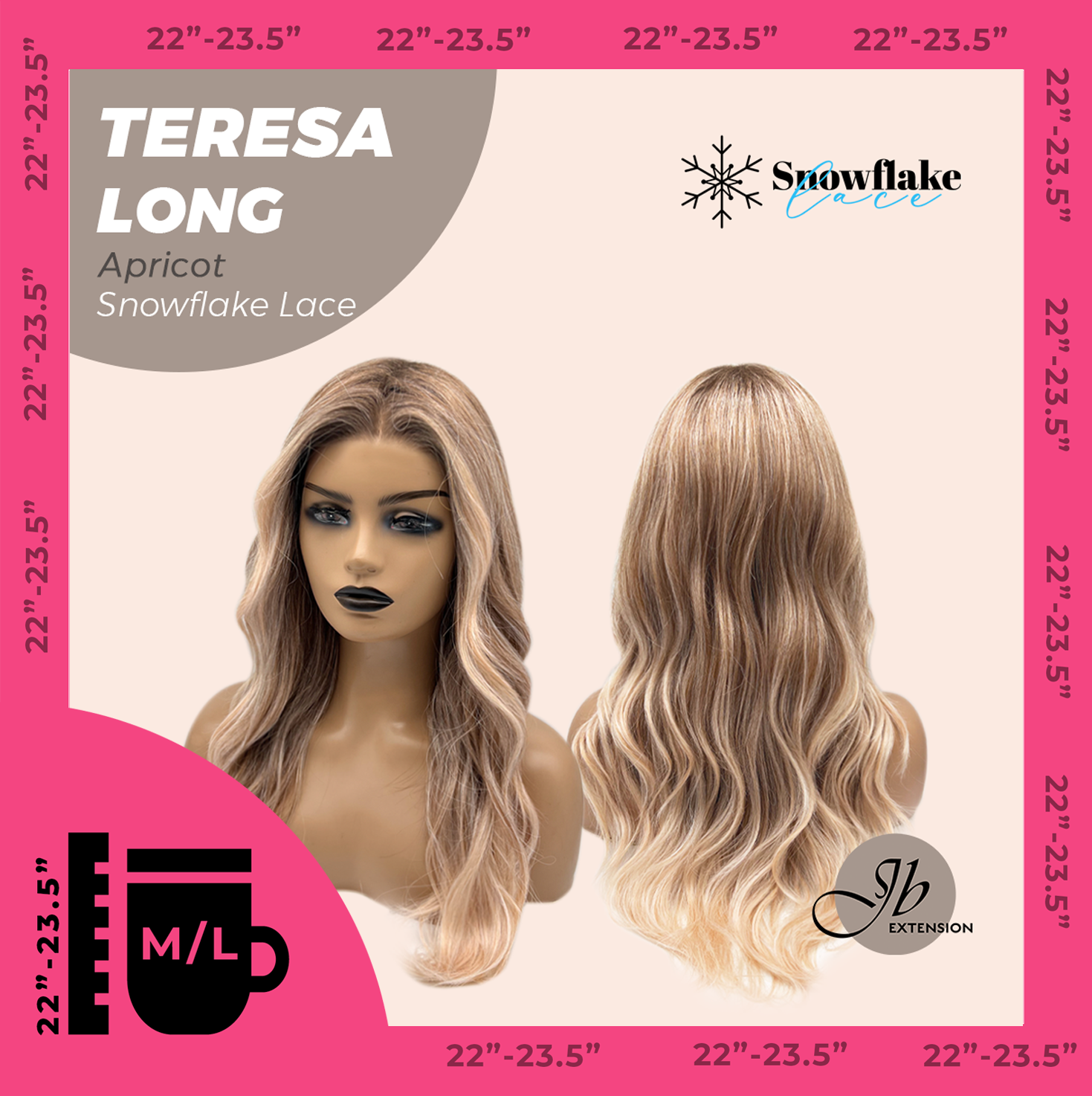 JBEXTENSION 22 Inches Long Apricot Pre-Cut Snowflake Lace Frontlace Glueless Wig TERESA LONG APRICOT【PERMATEASE】【BENDY EAR TABS】- M/L