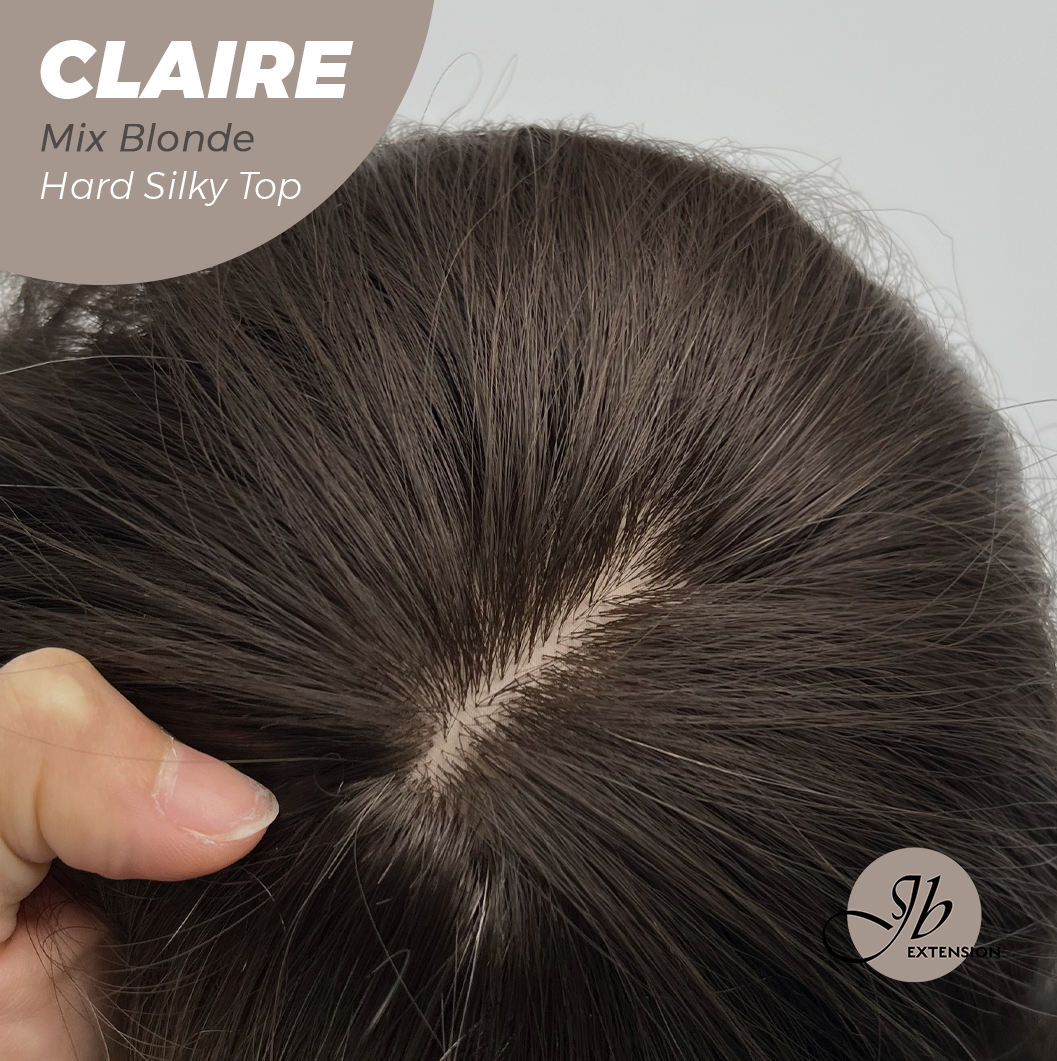 JBEXTENSION 22 Inches Scalpiana Mix Blonde 3.5X4 Hard Silky Top Natural Scalp Effect Women Wig With Bangs CLAIRE SILKY TOP MIX BLONDE