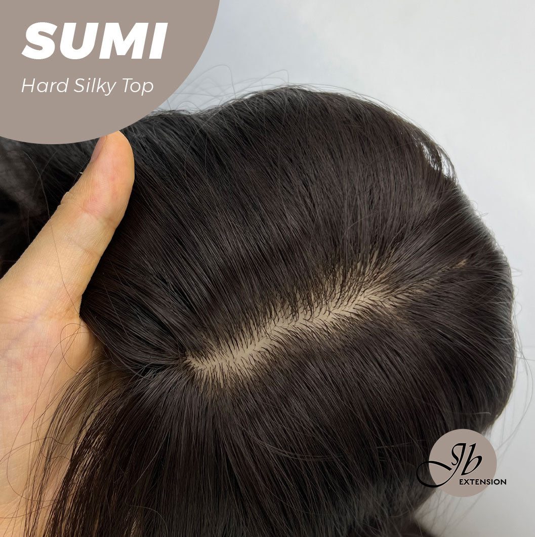 JBEXTENSION 24 Inches Scalpiana Wave Midnight Brown( Black/Brown) 3.5X4 Hard Silky Top Natural Scalp Effect Wig With Curtain Bang SUMI