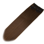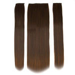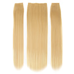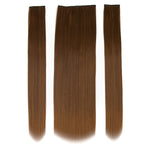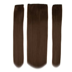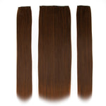 Our?3 piece straight?hair extension set is made with our revolutionary new synthetic hair fiber, which looks and feels just like human hair. These extensions come in three wefts made with 8 layers of hair each and are?our best-selling product, providing a full head of hair, with two smaller pieces that clip in on each side and one larger piece that clips in at the back. This makes it an exceptional extension set that can be used for special events and wearing it daily, as the different size pieces allow you to obtain numerous different hairstyles by simply changing the angle and position where you clip them in.
