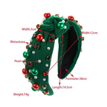 JBextension Christmas Headbands for Women Christmas Hair Accessories for Women Christmas Outfits Knotted Headbands with Pearls Rhinestones Holiday Head Band for Women’s Hair Festive Headpieces Christmas Gifts