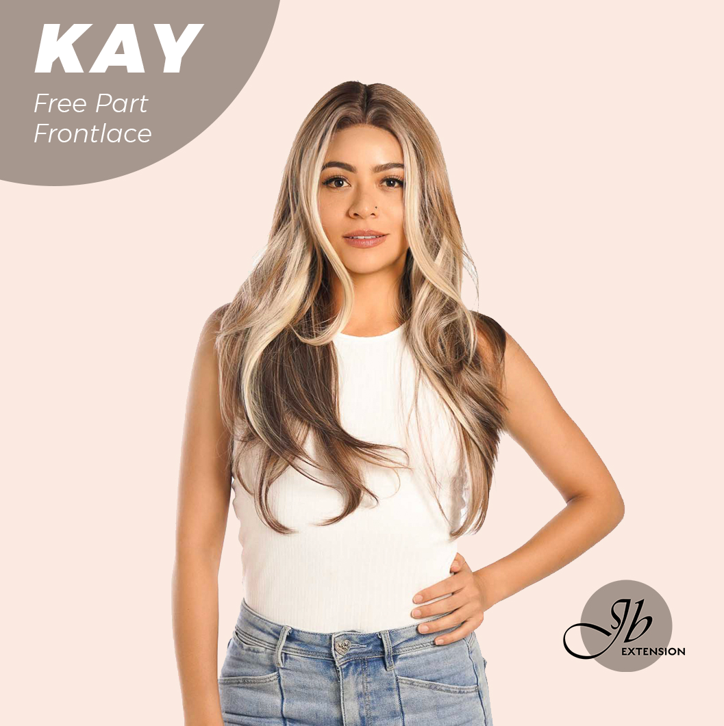 JBEXTENSION 24 Inches Brown With Highlight Curly Pre-Cut Free Part Frontlace Glueless Wig KAY FREE PART