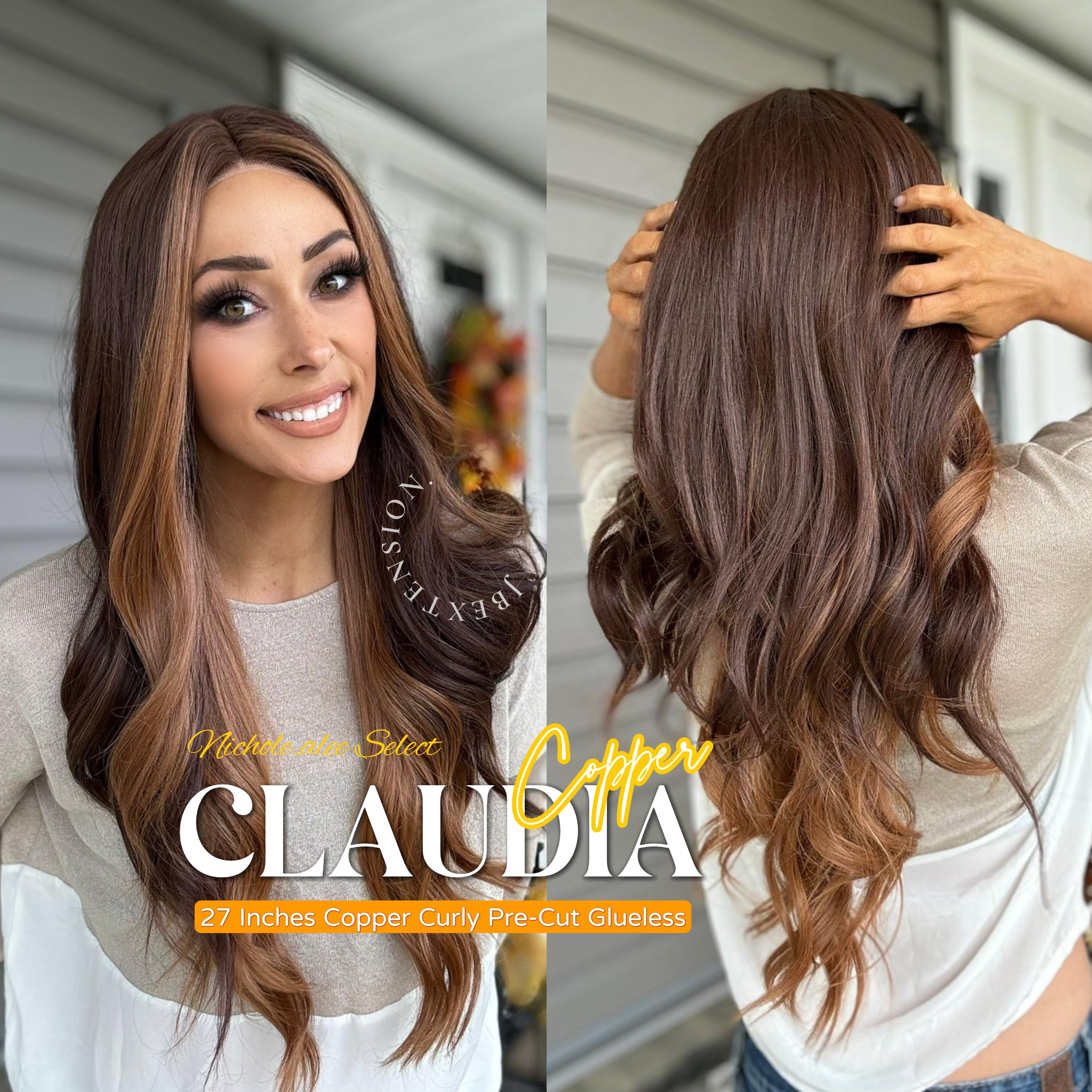 JBEXTENSION 27 Inches Copper Curly Pre-Cut Frontlace Glueless Wig CLAUDIA COPPER