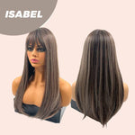 JBEXTENSION?22 Inches?Dark?Brown With?Blonde?Highlight?Straight?Wig ISABEL