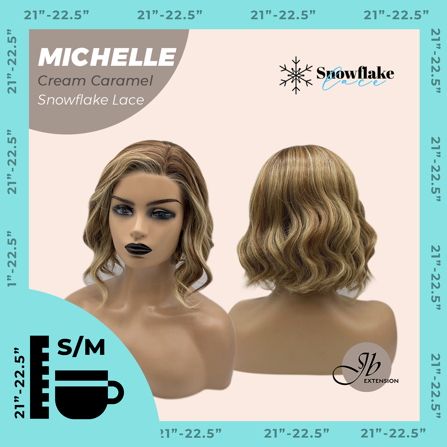 JBEXTENSION 10 Inches Hazelnut Blonde Highlight Pre-Cut Side Part Snowflake Lace Frontlace Glueless Wig MICHELLE HAZELNUT【BENDY EAR TABS】